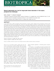 ชื่อบทความ : Natural regeneration as a tool for large‐scale forest restoration in the tropics: prospects and challenges ชื่อผู้แต่ง : Robin L. Chazdon and Manuel R. Guariguata ชื่อวารสาร : Biotropica Volume48, Issue6 November 2016 Pages 716-730 ISSN : 1744-7429 doi : https://doi.org/10.1111/btp.12381 |