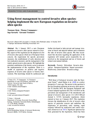 ชื่อบทความ : Using forest management to control invasive alien species: helping implement the new European regulation on invasive alien species ชื่อผู้แต่ง : Tommaso Sitzia, et al. ชื่อวารสาร : Biological Invasions January 2016, Volume 18, Issue 1, pp 1–7 ISSN : 1573-1464 doi : https://doi.org/10.1007/s10530-015-0999-8 |