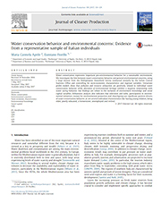 ชื่อบทความ : Water conservation behavior and environmental concerns: Evidence from a representative sample of Italian individuals ชื่อผู้แต่ง : Maria Carmela Aprile and Damiano Fiorillo ชื่อวารสาร : Journal of Cleaner Production Volume 159, 15 August 2017, Pages 119-129 ISSN : 0959-6526 doi : https://doi.org/10.1016/j.jclepro.2017.05.036 |