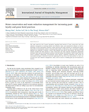 ชื่อบทความ : Water conservation and waste reduction management for increasing guest loyalty and green hotel practices ชื่อผู้แต่ง : Han, Heesup, et al. ชื่อวารสาร : International Journal of Hospitality Management September 2018 75:58-66 ISSN : 0278-4319 doi : https://doi.org/10.1016/j.ijhm.2018.03.012 |
