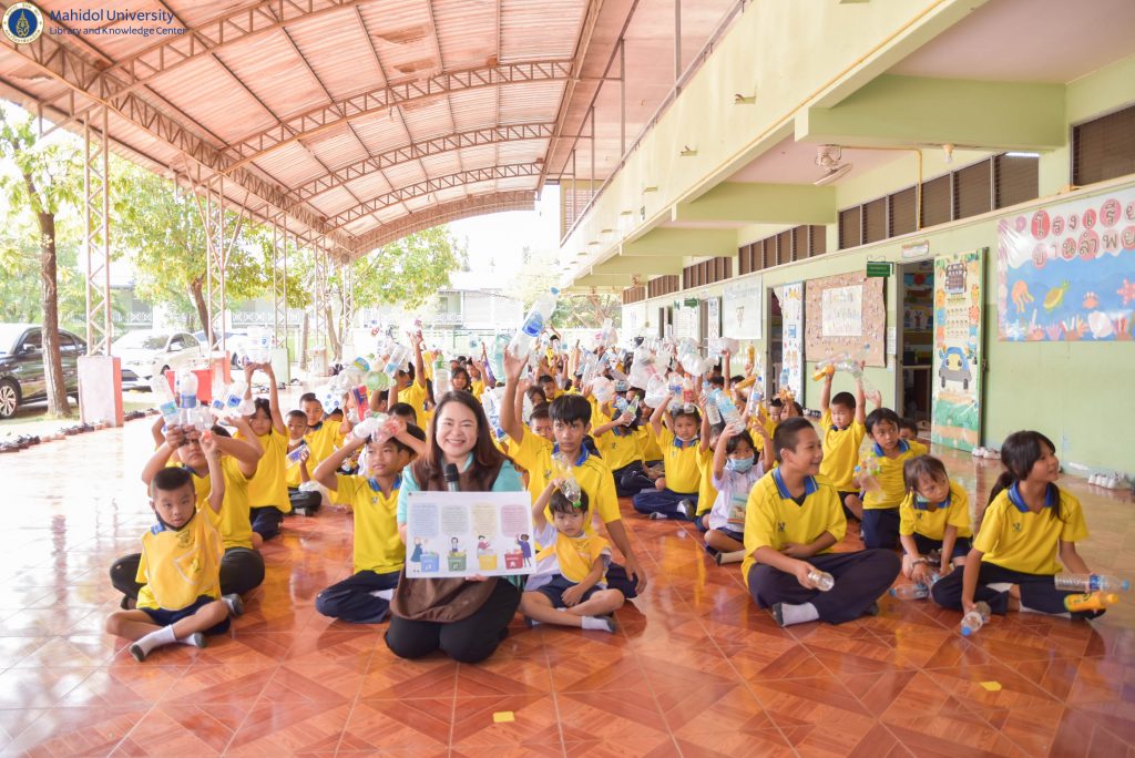 ในการนี้ หอสมุดและคลังความรู้ฯ และโรงเรียนบ้านลำพยา ร่วมบูรณาการส่งเสริมและให้ความรู้ด้านสิ่งแวดล้อม โดยได้รับความร่วมมือจาก นักเรียน คุณครู และผู้ปกครอง นำขวดพลาสติกที่ผ่านการใช้งานแล้ว มาร่วมจัดกิจกรรม โดยมีวัตถุประสงค์เพื่อสร้างจิตสำนักในการตระหนักถึงความสำคัญของการคัดแยกขยะอย่างถูกวิธี ผ่านการเล่นการเสริมสร้างความรู้เรื่องการจัดการขยะ ด้วยหลัก 3R ในการพัฒนาความรู้ให้แก่นักเรียนและชุมชนโดยรอบมหาวิทยาลัยมหิดล เพื่อลดปริมาณขยะได้อย่างมีประสิทธิภาพ ซึ่งกิจกรรมดังกล่าวเกิดขึ้นภายใต้การลงนามบันทึกข้อตกลงความร่วมมือ (MOU) ทางวิชาการเพื่อการพัฒนาห้องสมุดดิจิทัล ระหว่างหอสมุดและคลังความรู้มหาวิทยาลัยมหิดล และหน่วยงานทางการศึกษา กับโรงเรียนในจังหวัดนครปฐม