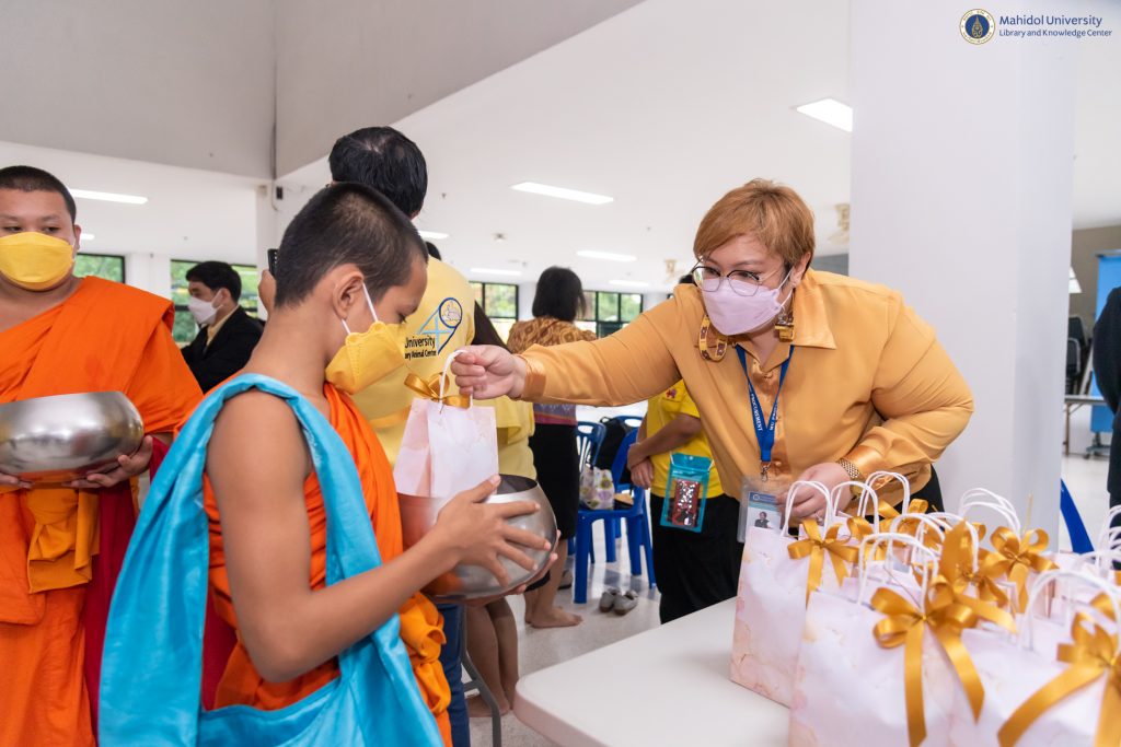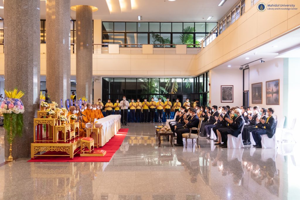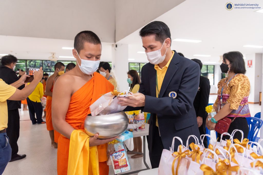มหาวิทยาลัยมหิดล จัดพิธีทำบุญตักบาตรแด่พระสงฆ์ จำนวน 30 รูป เพื่อถวายเป็นพระราชกุศล และพิธีถวายราชสดุดีน้อมรำลึกในพระมหากรุณาธิคุณ พระบาทสมเด็จพระบรมชนกาธิเบศ มหาภูมิพลอดุลยเดชมหาราช บรมนาถบพิตร เนื่องในโอกาสวันคล้ายวันพระบรมราชสมภพ และวันพ่อแห่งชาติ ในวันศุกร์ที่ 2 ธันวาคม 2565 ณ อาคารสำนักงานอธิการบดี มหาวิทยาลัยมหิดล ศาลายา โดยได้รับเกียรติจาก ศาสตราจารย์ นายแพทย์บรรจง มไหสวริยะ อธิการบดี มหาวิทยาลัยมหิดล เป็นประธานในพิธี ร่วมกับคณะผู้บริหาร มหาวิทยาลัยมหิดล ส่วนงานฯ และบุคลากรฯ ในโอกาสนี้ หอสมุดและคลังความรู้มหาวิทยาลัยมหิดล โดย ผู้ช่วยศาสตราจารย์ ดร.นพพล เผ่าสวัสดิ์ ผู้อำนวยการหอสมุดและคลังความรู้ฯ และบุคลากรหอสมุดและคลังความรู้ฯ ได้เข้าร่วมพิธีฯ ในครั้งนี้ด้วย เพื่อแสดงความจงรักภักดี และน้อมสำนึกในพระมหากรุณาธิคุณ