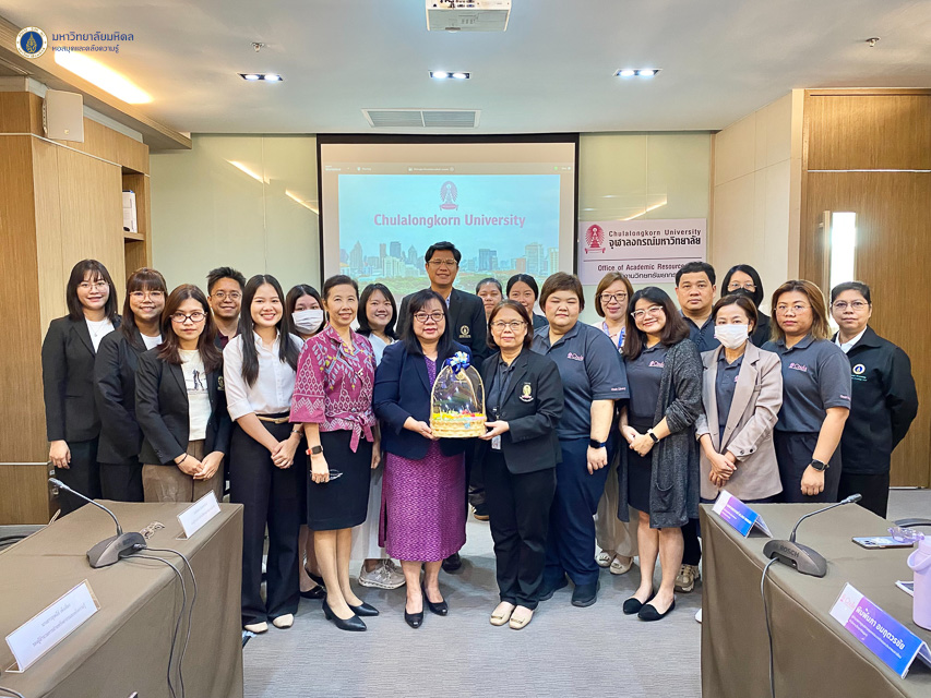 หอสมุดและคลังความรู้มหาวิทยาลัยมหิดล นำโดย คุณอังคณา อินทรพาณิชย์ รองผู้อำนวยการฝ่ายบริหารและพัฒนาคุณภาพ และคุณอุษณีย์ เพ็งเที่ยง รองผู้อำนวยการฝ่ายทรัพยากรและคลังความรู้ พร้อมด้วยบุคลากรจำนวนทั้งสิ้น 15 ท่าน เข้าเยี่ยมชมและศึกษาดูงานเกี่ยวกับแนวทางในการดำเนินงานด้านการจัดการทรัพยากรสารสนเทศด้วยระบบ Digital Common เพื่อยกระดับการจัดการและการให้บริการสารสนเทศเชิงดิจิทัลของหอสมุดและคลังความรู้ฯ ให้มีประสิทธิภาพ โดยมีคุณสายฝน เต่าแก้ว ผู้อำนวยการฝ่ายจัดการข้อมูลสารสนเทศ ให้การต้อนรับ ในวันพฤหัสบดีที่ 2 ตุลาคม พ.ศ. 2568 ณ สำนักงานวิทยทรัพยากร จุฬาลงกรณ์มหาวิทยาลัย
