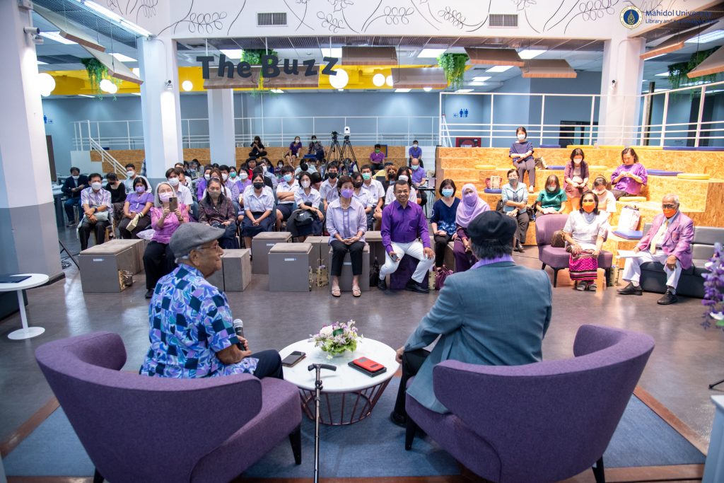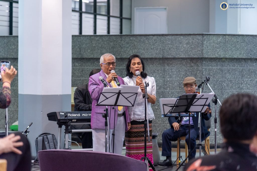 อมาตยกุล กรรมการและเลขานุการมูลนิธิราชสุดา ที่ปรึกษากิตติมศักดิ์ห้องสมุดดนตรีสมเด็จพระเทพรัตน์ และอาจารย์นคร ถนอมทรัพย์ (กุงกาดิน) ศิลปินแห่งชาติ สาขาศิลปะการแสดง (ดนตรีไทยสากล-ประพันธ์และขับร้อง) ปี 2554 ซึ่งให้เกียรติเป็นวิทยากรผู้ทรงคุณวุฒิในครั้งนี้ เมื่อวันจันทร์ที่ 3 เมษายน 2566 ที่ผ่านมา ณ บริเวณ Co-Mu Space ชั้น 1 อาคารหอสมุดและคลังความรู้มหาวิทยาลัยมหิดล