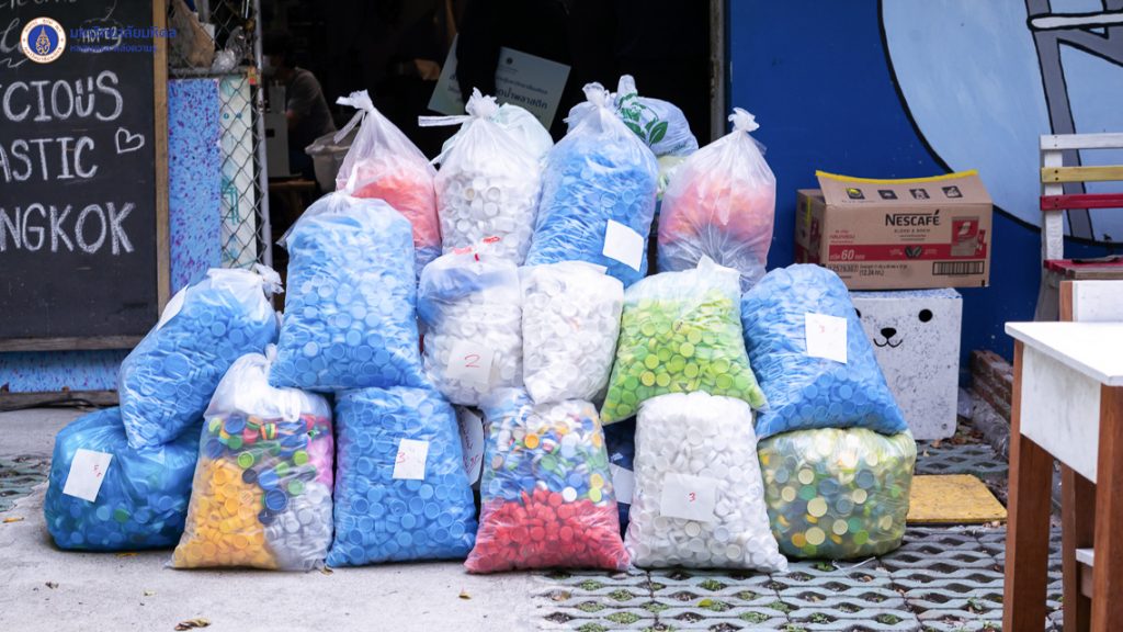 หอสมุดฯ ส่งมอบฝาขวดน้ำพลาสติกให้แก่องค์กรพรีเชียส พลาสติก แบงค็อก
