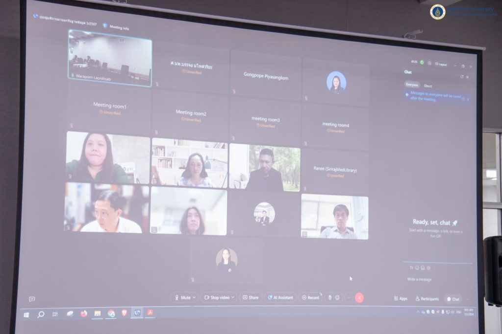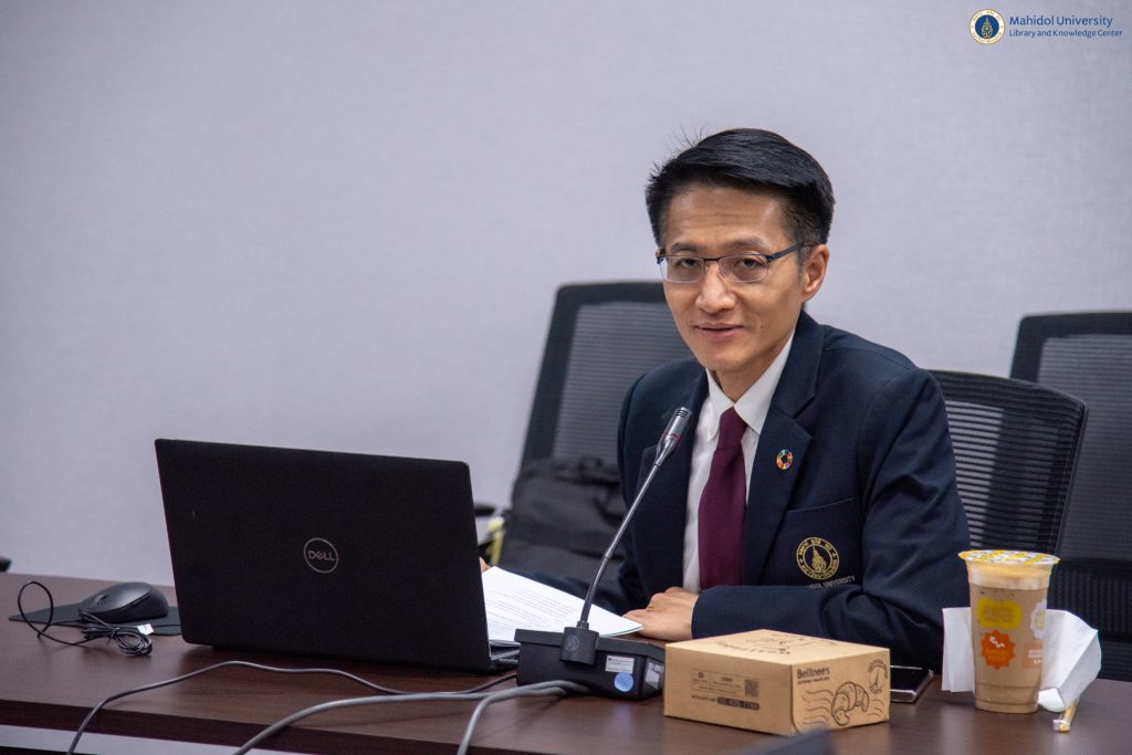 ผู้ช่วยศาสตราจารย์ ดร.สราวุธ เวชกิจ ผู้อำนวยการหอสมุดและคลังความรู้ฯ และคุณอังคณา อินทรพาณิชย์ รองผู้อำนวยการหอสมุดและคลังความรู้ฯ ให้การต้อนรับและเข้าร่วมการประชุมในครั้งนี้ด้วย ในวันพุธที่ 3 กรกฎาคม พ.ศ. 2567 ณ ห้องประชุม 2 ชั้น 3 อาคารหอสมุดและคลังความรู้มหาวิทยาลัยมหิดล ศาลายา และผ่านระบบประชุมออนไลน์ Cisco WebEx Meetings
