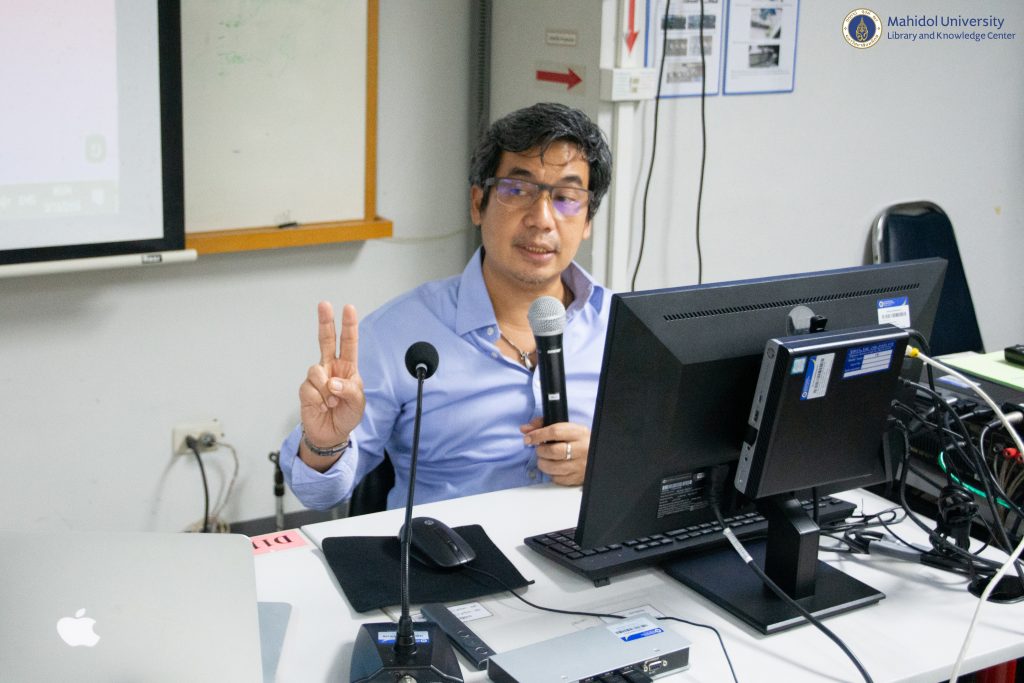 หอสมุดและคลังความรู้มหาวิทยาลัยมหิดล โดย งานพัฒนาทรัพยากรวารสาร ฝ่ายเทคนิคห้องสมุด ได้จัดอบรมในหัวข้อ การใช้งานโปรแกรม EndNote โดย ได้รับเกียรติจาก คุณจิรวัฒน์ พรหมพร บริษัท บุ๊คโปรโมชั่นแอนด์เซอร์วิส เป็นวิทยากรบรรยายให้ความรู้ในครั้งนี้ เมื่อวันศุกร์ที่ 3 พฤศจิกายน 2566 ณ ห้องปฏิบัติการคอมพิวเตอร์ 101 สำนักงานอธิการบดี มหาวิทยาลัยมหิดล และผ่านระบบออนไลน์โปรแกรม Cisco Webex Meeting ซึ่งมีบุคลากรมหาวิทยาลัยมหิดล เข้าร่วมการอบรมทั้งสิ้นจำนวน 317 คน โดยการอบรมครั้งนี้มีวัตถุประสงค์เพื่อเสริมทักษะการใช้งานโปรแกรมจัดการบรรณานุกรม เพื่อให้บุคลากรมหาวิทยาลัยมหิดลปฏิบัติงานวิจัยได้อย่างมีประสิทธิภาพมากขึ้น