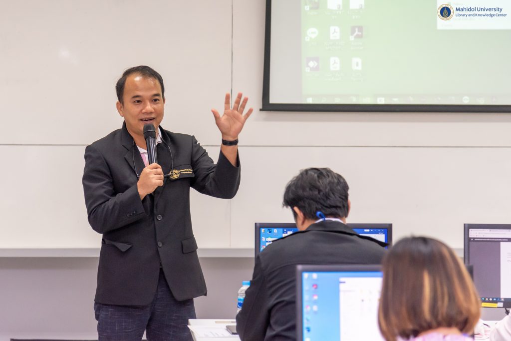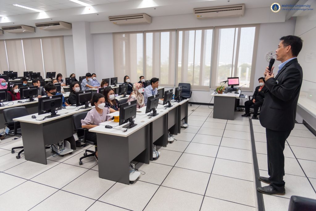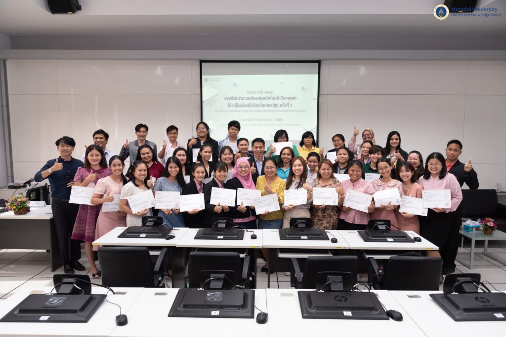 หอสมุดและคลังความรู้มหาวิทยาลัยมหิดล โดย ดร.อภิภู สิทธิภูมิมงคล รองผู้อำนวยการฝ่ายเทคโนโลยีการศึกษาและพันธกิจพิเศษ เป็นประธานกล่าวเปิดโครงการฝึกอบรมการพัฒนาระบบห้องสมุดอัตโนมัติ Senayan ให้แก่โรงเรียนในจังหวัดนครปฐม ครั้งที่ 1 /2566 สืบเนื่องจากที่ได้มีการลงนามบันทึกข้อตกลงความร่วมมือทางวิชาการเพื่อการพัฒนาห้องสมุดดิจิทัลระหว่างหอสมุดและคลังความรู้มหาวิทยาลัยมหิดลกับโรงเรียนในจังหวัดนครปฐม โดยมีคุณไพบูลย์ วงษ์ปาน คุณครูประจำโรงเรียนบุณยศรีสวัสดิ์ และคุณสุรศักดิ์ บุตรศรี บรรณารักษ์ งานวิเคราะห์ทรัพยากรสารสนเทศ เป็นวิทยากรบรรยายให้ความรู้ในครั้งนี้ เมื่อวันอังคารที่ 4 เมษายน 2566 ที่ผ่านมา ณ ห้องคอมพิวเตอร์ 416 ชั้น 4 อาคารสิริวิทยา คณะศิลปศาสตร์ มหาวิทยาลัยมหิดล มีคุณครู อาจารย์ และบุคลากรจากโรงเรียนในเครือข่ายจังหวัดนครปฐมเข้ารับการอบรมทั้งสิ้น จำนวน 37 คน จาก 15 โรงเรียน ซึ่งโครงการดังกล่าวมีวัตถุประสงค์เพื่อส่งเสริมการเรียนรู้ผ่านห้องสมุดด้วยระบบห้องสมุดอัตโนมัติที่ทันสมัย พัฒนาระบบการจัดเก็บ การสืบค้น และการยืม-คืนทรัพยากรสารสนเทศอย่างเหมาะสมและเป็นมาตรฐานต่อไปในอนาคต
