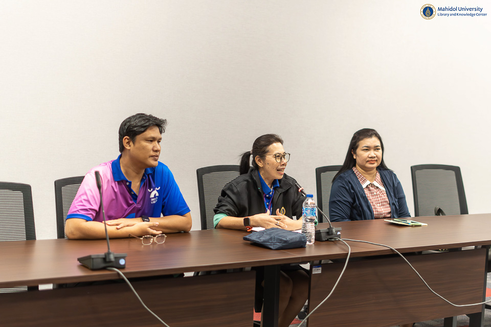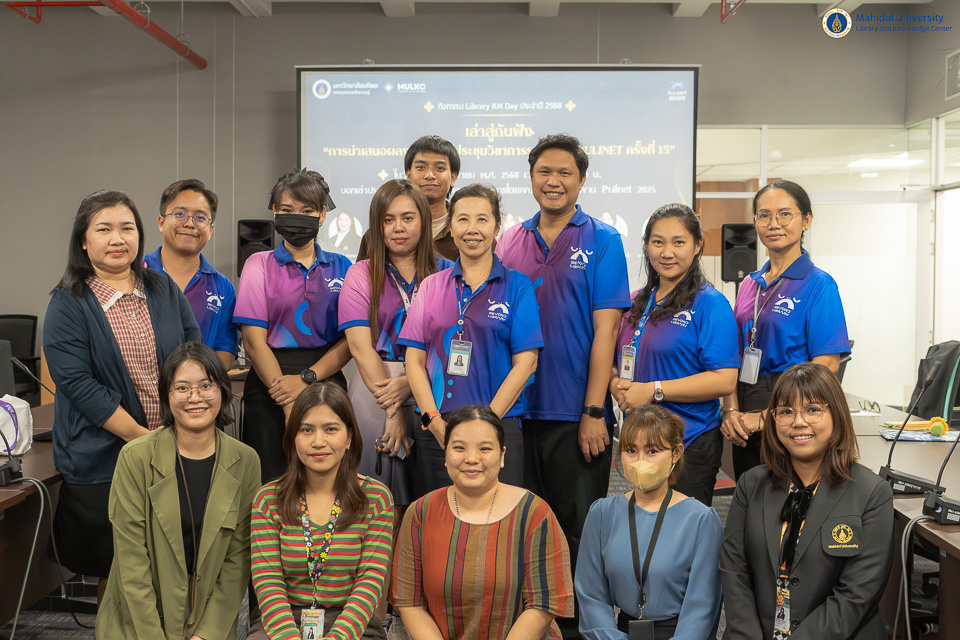 หอสมุดและคลังความรู้มหาวิทยาลัยมหิดล โดย คุณอุษณีย์ เพ็งเที่ยง รองผู้อำนวยการฝ่ายทรัพยากรและคลังความรู้ เป็นประธานกล่าวเปิดโครงการ Library KM Day ครั้งที่ 1 ประจำปี พ.ศ. 2568 ในวันศุกร์ที่ 4 เมษายน พ.ศ. 2568 ณ ห้องประชุม 1 ชั้น 3 อาคารหอสมุดและคลังความรู้ฯ และในรูปแบบออนไลน์ผ่านระบบ Cisco WebEx Meeting โดยวิทยากรผู้เชี่ยวชาญของหอสมุดและคลังความรู้ฯ ในหัวข้อ เล่าสู่กันฟัง “การนำเสนอผลงานในการประชุมวิชาการระดับชาติ PULINET ครั้งที่ 15” จำนวน 7 ท่าน ดังนี้