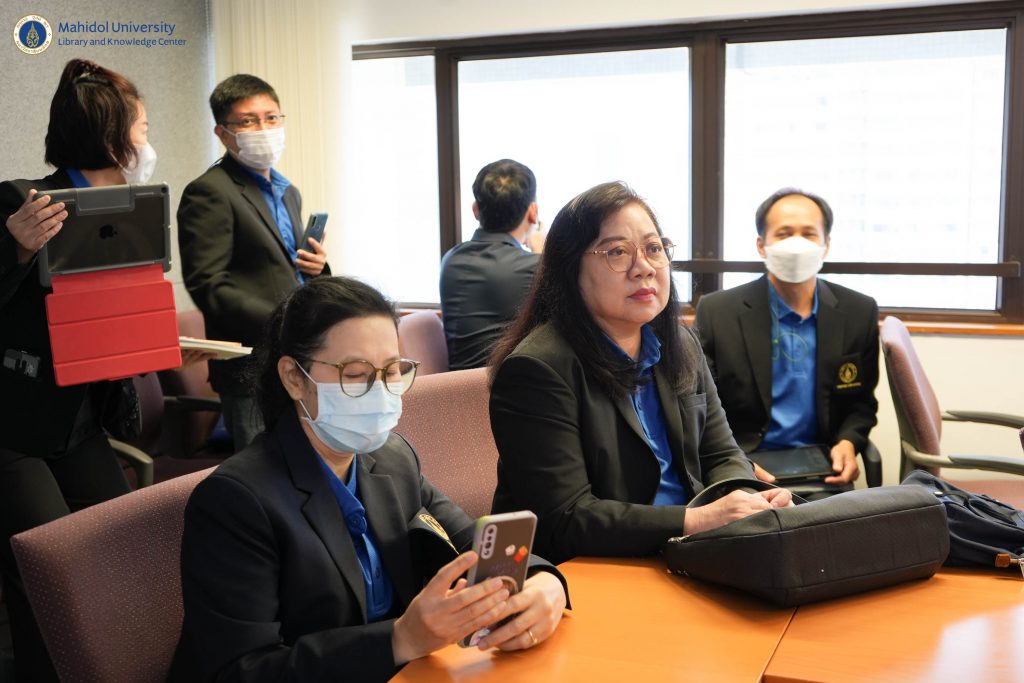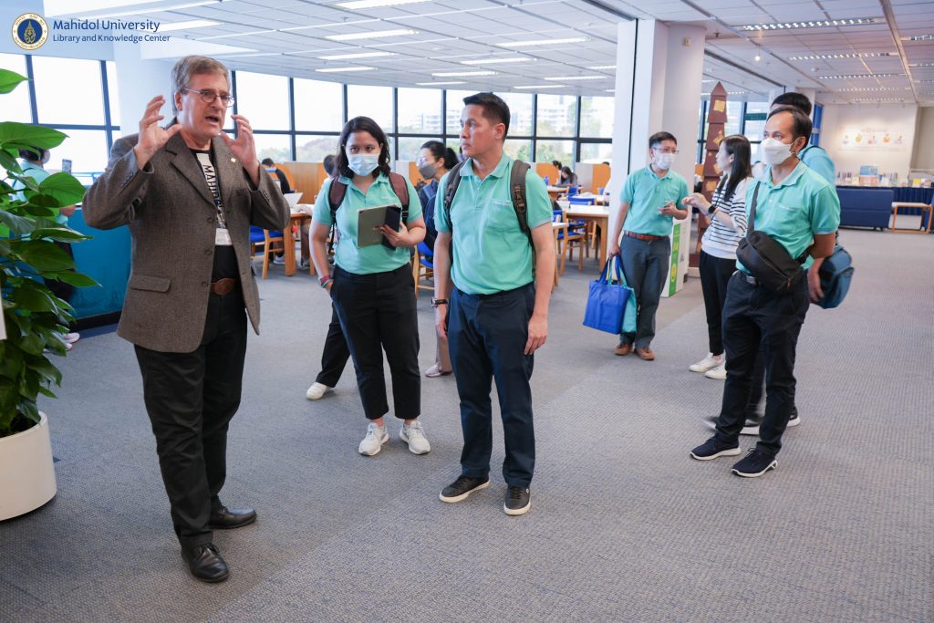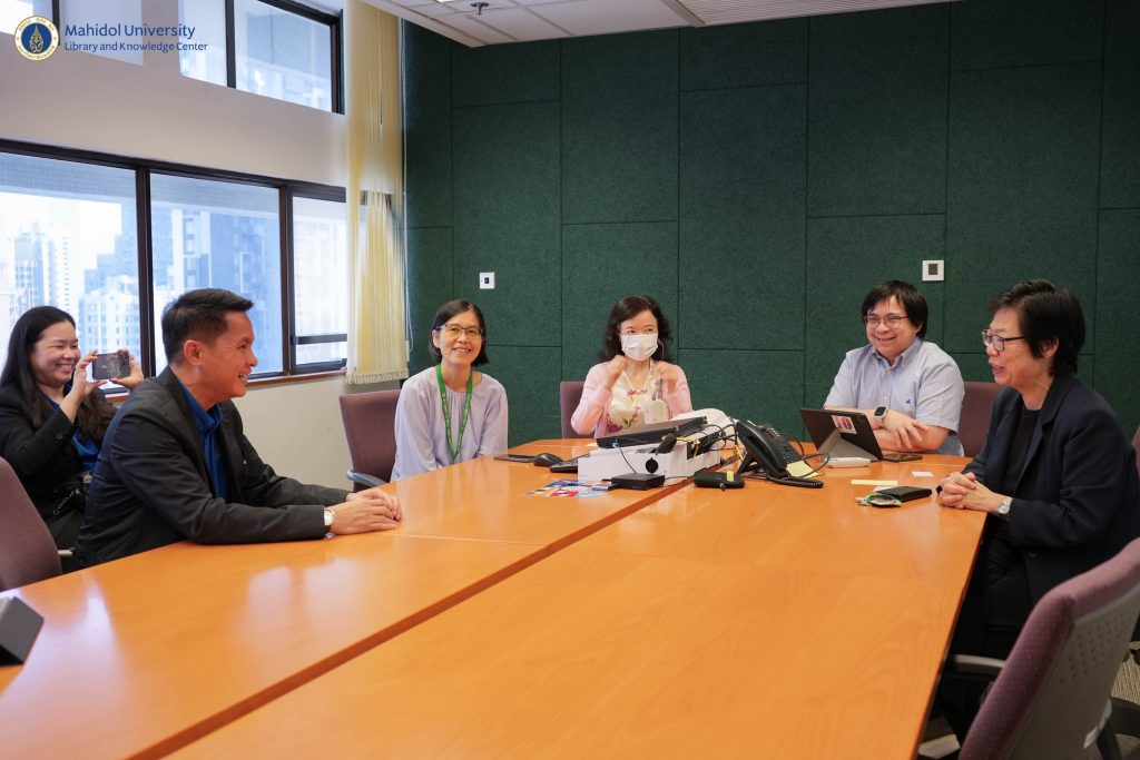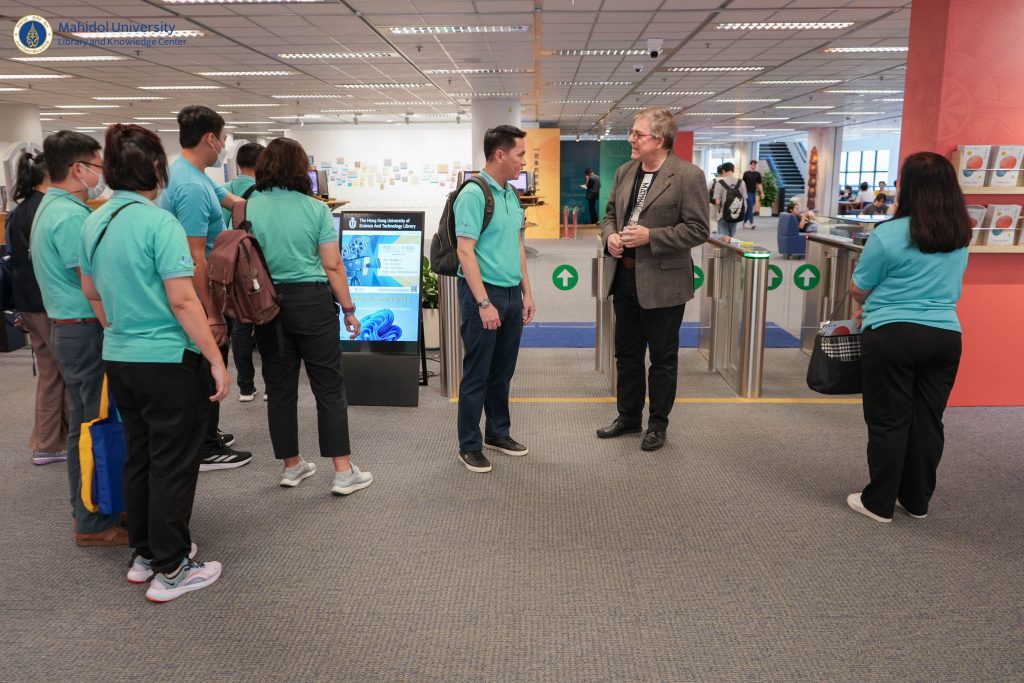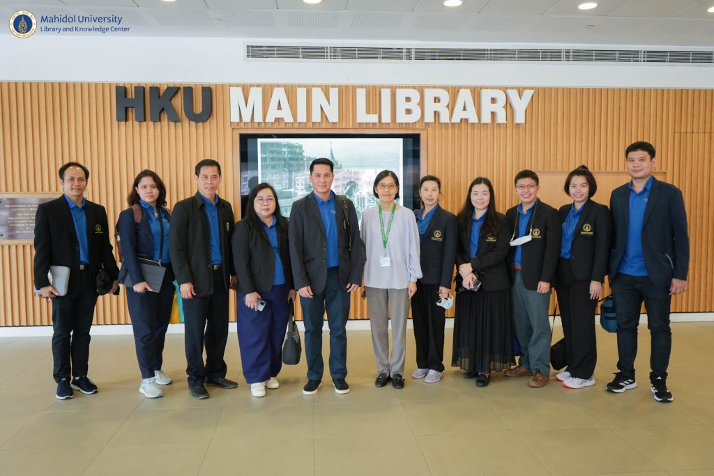 หอสมุดและคลังความรู้มหาวิทยาลัยมหิดล นำโดย ผู้ช่วยศาสตราจารย์ ดร.นพพล เผ่าสวัสดิ์ ผู้อำนวยการหอสมุดและคลังความรู้ฯ พร้อมด้วยคณะผู้บริหาร และบุคลากรหอสมุดและคลังความรู้ฯ จำนวน 11 ท่าน เดินทางไปศึกษาดูงาน ณ เขตบริหารพิเศษฮ่องกงแห่งสาธารณรัฐประชาชนจีน ระหว่างวันที่ 3-4 ตุลาคม 2566 ที่ผ่านมา ในการนี้ผู้แทนหอสมุดและคลังความรู้ฯ ได้เดินทางไปเยี่ยมชม ห้องสมุด Lee Shau Kee มหาวิทยาลัยวิทยาศาสตร์และเทคโนโลยีฮ่องกง (Hong Kong University of Science and Technology) ในวันอังคารที่ 3 ตุลาคม 2566 โดยมี Mr. Edward F Spodick, Associate Director of Library Services และ Ms. Joyce W K Yau, Manager (Administrative Services) ให้การต้อนรับและพาเยี่ยมชมพื้นที่ให้บริการ ทรัพยากรและเทคโนโลยีของห้องสมุดฯ