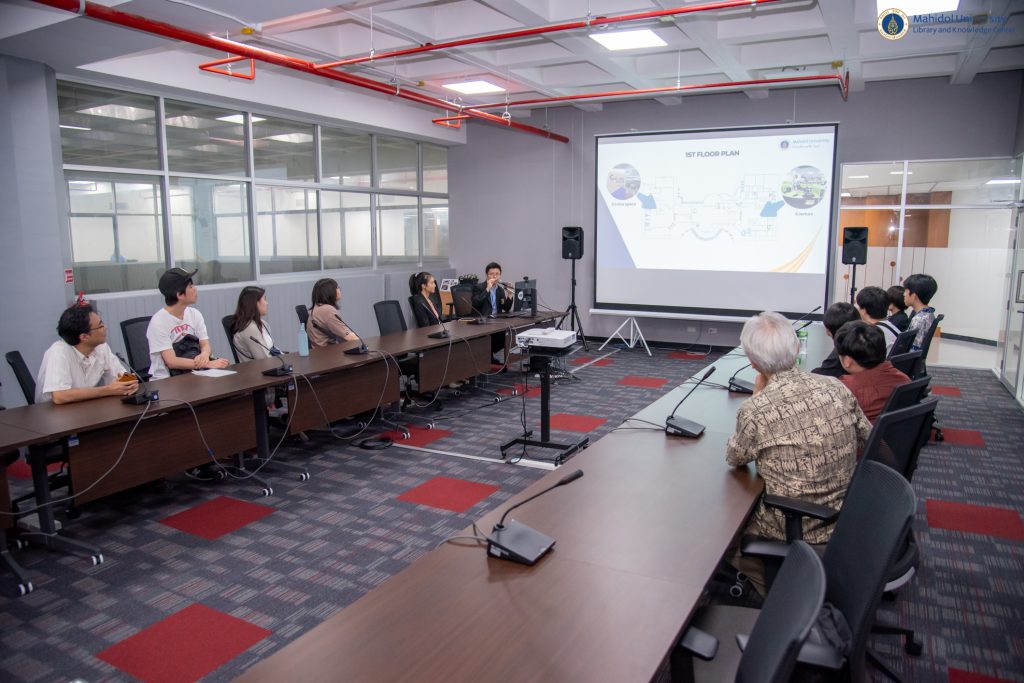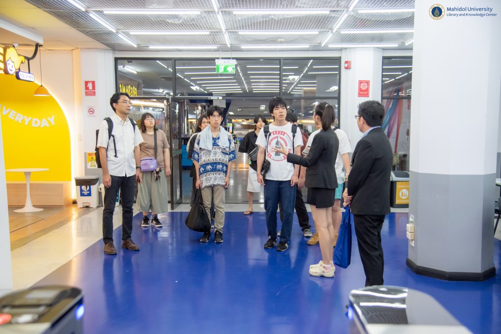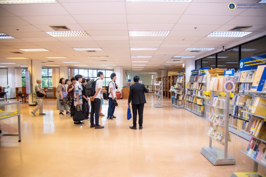 หอสมุดและคลังความรู้มหาวิทยาลัยมหิดล โดย ดร.อภิภู สิทธิภูมิมงคล รองผู้อำนวยการฝ่ายเทคโนโลยีการศึกษาและพันธกิจพิเศษ ให้การต้อนรับคณะผู้ศึกษาดูงานจากมหาวิทยาลัย Tamagawa, ประเทศญี่ปุ่น นำโดย Visiting Professor Haruo Orito, ประธานเจ้าหน้าที่บริหาร ของ สถาบันวิจัย TOC และ Professor Hidekazu Shiozawa, ภาควิชาวิทยาศาสตร์ซอฟต์แวร์, มหาวิทยาลัย Tamagawa ประเทศญี่ปุ่น ในวันอังคารที่ 5 มีนาคม 2567 ณ อาคารหอสมุดและคลังความรู้ฯ เพื่อศึกษาและแลกเปลี่ยนข้อมูลในด้านต่าง ๆ ของหอสมุดและคลังความรู้ฯ จากนั้นได้เยี่ยมชมหอพระราชประวัติสมเด็จพระบรมราชชนก นิทรรศการ Wisdom of the Land ณ ศูนย์การเรียนรู้มหิดล โดยมี คณะวิศวกรรมศาสตร์ มหาวิทยาลัยมหิดล เป็นผู้ประสานงานในครั้งนี้