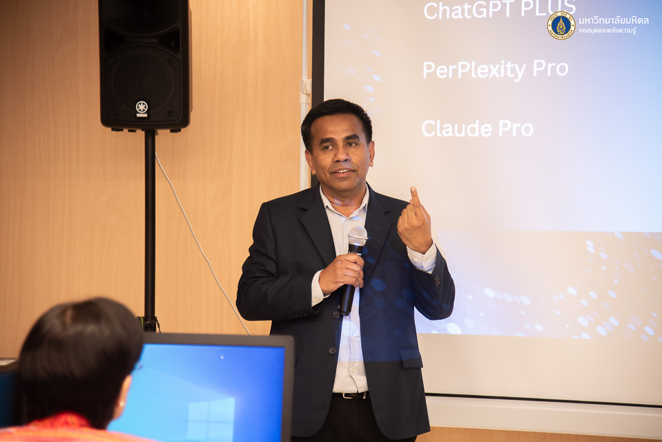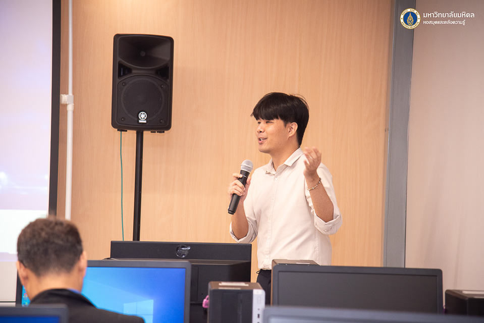 หอสมุดและคลังความรู้มหาวิทยาลัยมหิดล โดย อาจารย์ ดร.เอกชัย วารินศิริรักษ์ รองผู้อำนวยการฝ่ายนวัตกรรมบริการห้องสมุด และผู้ช่วยศาสตราจารย์ ดร.ทวีศักดิ์ สมานชื่น รองผู้อำนวยการฝ่ายเทคโนโลยีดิจิทัล ให้การต้อนรับผู้ศึกษาดูงานจากสำนักงานพัฒนาการวิจัยการเกษตร (องค์การมหาชน) นำโดย คุณกุลวรา โชติพันธุ์โสภณ รองผู้อำนวยการสำนักงาน และบุคลากรจำนวน 9 ท่าน ในวันศุกร์ที่ 5 กันยายน พ.ศ. 2568 ณ ห้องอบรมคอมพิวเตอร์ชั้น 2 อาคารหอสมุดและคลังความรู้ฯ (ศาลายา) โดยมีวัตถุประสงค์เพื่อเยี่ยมชมและแลกเปลี่ยนเรียนรู้การใช้เครื่องมือเทคโนโลยีปัญญาประดิษฐ์ AI เพื่อช่วยในการสืบค้นและให้บริการข้อมูลวิจัยของหอสมุดและคลังความรู้ฯ และเป็นแนวทางการพัฒนาศูนย์บริการข้อมูลการวิจัย นวัตกรรมและเทคโนโลยีการเกษตร (Center of Agricultural Research Innovation and Technology Data Service: CADS) ซึ่งเป็นแหล่งข้อมูลสนับสนุนงานวิจัยด้านการเกษตร และให้บริการแก่ผู้ที่สนใจวิเคราะห์และประยุกต์ใช้ข้อมูลการวิจัยนวัตกรรมการเกษตรอย่างมีประสิทธิภาพต่อไปในอนาคต