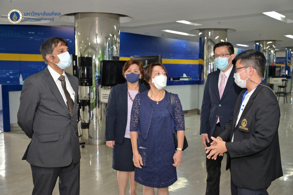 หอสมุดและคลังความรู้มหาวิทยาลัยมหิดล โดยบุคลากรของหอสมุดและคลังความรู้ฯ ประกอบด้วย คุณปรเมศวร์ รังษีสุริยันต์ นักวิเทศสัมพันธ์ งานบริหารและธุรการ และคุณศุภสิทธิ ทองสุข นักเอกสารสนเทศ หอสมุดกลาง ให้การต้อนรับคณะผู้เข้าเยี่ยมชมหอสมุดและคลังความรู้ ผู้ตรวจประเมินจาก World Physiotherapy ได้แก่ Prof. Alice Jones และ Prof. Narasimman Swaminathan พร้อมด้วยผู้บริหาร และคณาจารย์ของคณะกายภาพบำบัด ได้แก่ รองศาสตราจารย์ ดร. กภ.ชุติมา ชลายนเดชะ ผู้ช่วยคณบดีฝ่ายการศึกษาและที่ปรึกษาคณะกรรมการเตรียมการรับรองมาตรฐานสากล WPT ผู้ช่วยศาสตราจารย์ ดร. กภ.วรินทร์ กฤตยาเกียรณ ประธานคณะกรรมการเตรียมการรับรองมาตรฐานสากล WPT และ อาจารย์ กภ.ศิระ บุญประสพ อาจารย์ประจำคณะกายภาพบำบัด ในการเข้าเยี่ยมชมหอสมุดและคลังความรู้มหาวิทยาลัยมหิดล ศาลายา เมื่อวันอังคารที่ 6 ธันวาคม 2565 ที่ผ่านมา โดยเป็นส่วนหนึ่งของกิจกรรมการตรวจประเมิน ของหลักสูตรวิทยาศาสตรบัณฑิต สาขาวิชากายภาพบำบัด คณะกายภาพบำบัด มหาวิทยาลัยมหิดล ที่ดำเนินการขอรับรองมาตรฐานสากลจาก World Physiotherapy (World Physiotherapy Accreditation Service) เพื่อเป็นการยกระดับการจัดการเรียนการสอนของหลักสูตรให้มีคุณภาพ สอดคล้องตามแผนยุทธศาสตร์ด้านการศึกษาเพื่อมุ่งผลสัมฤทธิ์ตามมาตรฐานสากล