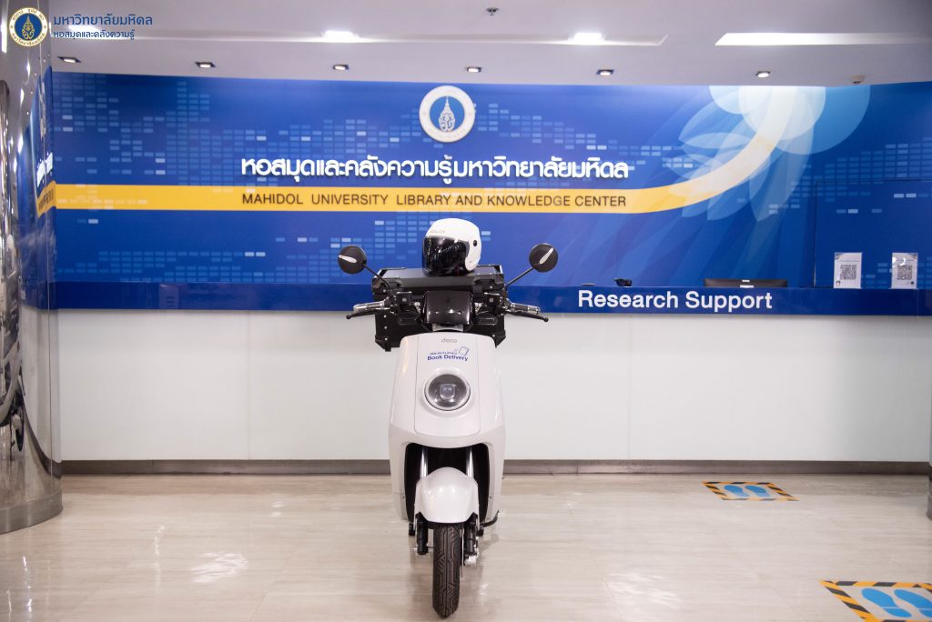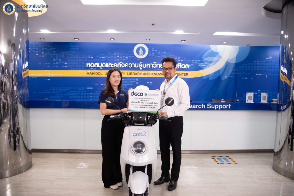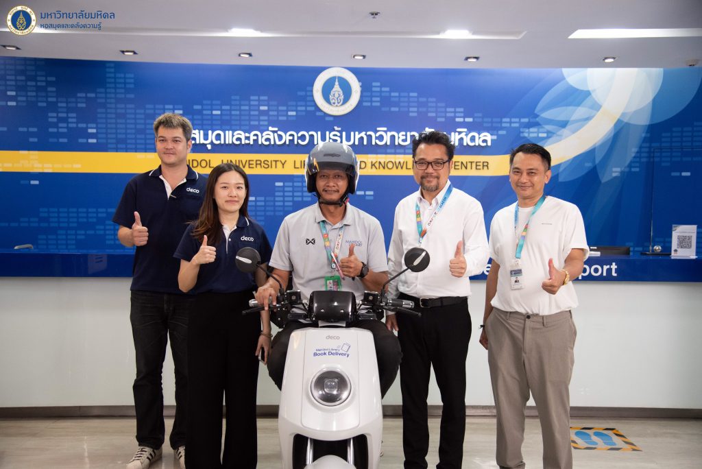 หอสมุดฯ รับมอบรถจักรยานยนต์ไฟฟ้าจากบริษัท เดโก้ กรีน เอนเนอร์จี จำกัด เสริมบริการ Mahidol Book Delivery มุ่งสู่สังคมคาร์บอนต่ำ