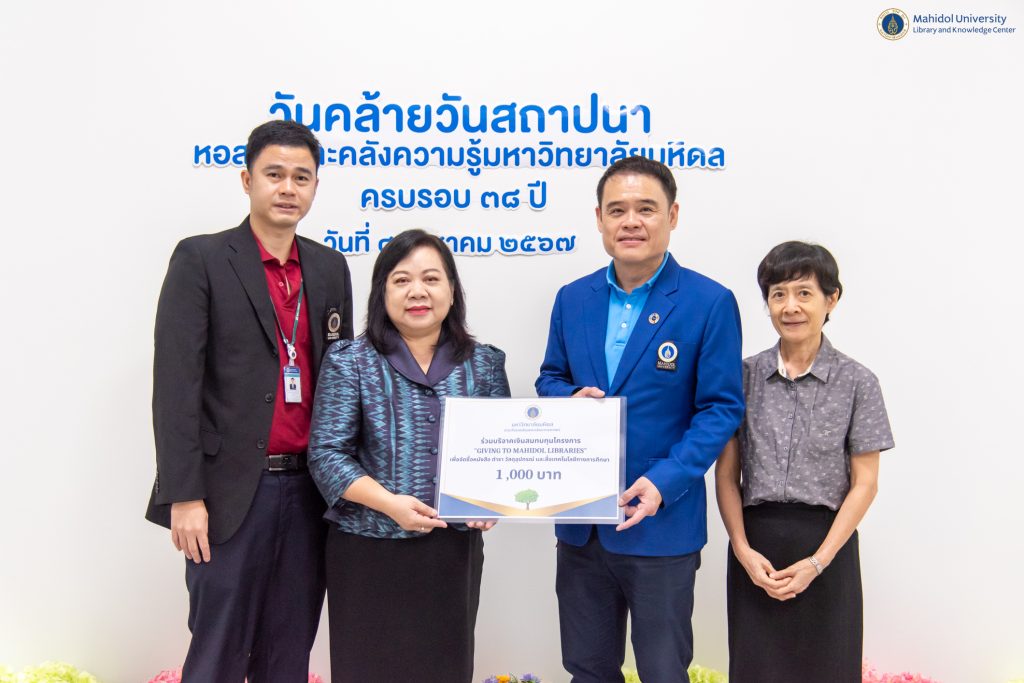 1. พิธีมอบเกียรติบัตรรางวัลเชิดชูบุคลากรดีเด่น ภายใต้โครงการเชิดชูเกียรติบุคลากรหอสมุดและคลังความรู้มหาวิทยาลัยมหิดล ประจำปี 2567