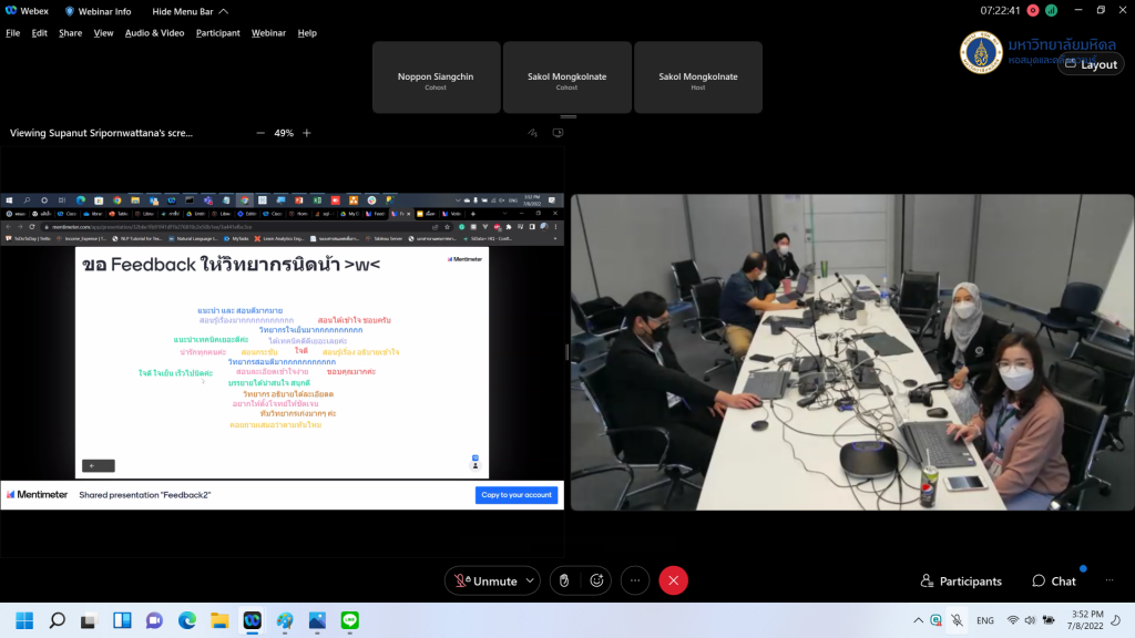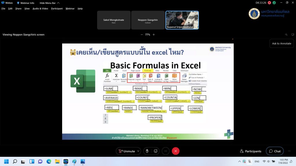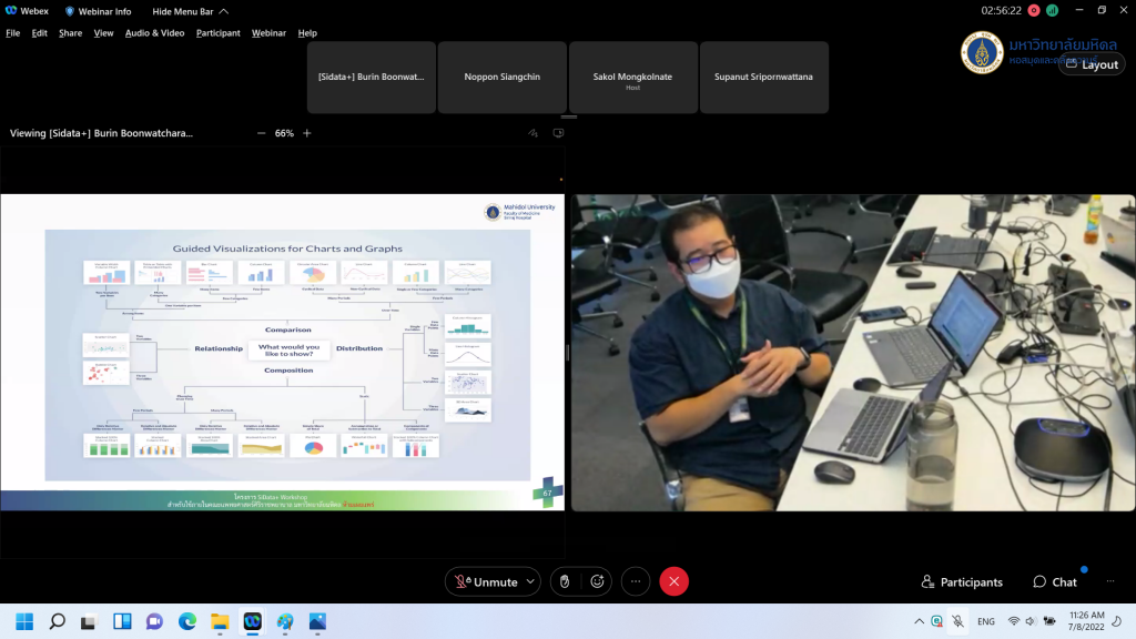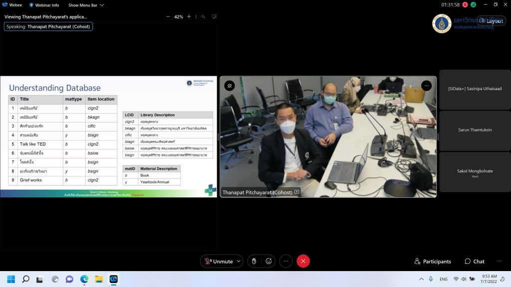 หอสมุดและคลังความรู้มหาวิทยาลัยมหิดล โดย ผู้ช่วยศาสตราจารย์ ดร.นพพล เผ่าสวัสดิ์ ผู้อำนวยการหอสมุดและคลังความรู้ฯ เป็นประธานกล่าวเปิดโครงการพัฒนาทักษะการวิเคราะห์ข้อมูลแก่บุคลากรหอสมุดและคลังความรู้มหาวิทยาลัยมหิดล ซึ่งจัดขึ้นในวันพฤหัสบดีที่ 7 และ วันศุกร์ที่ 8 กรกฎาคม 2565 ที่ผ่านมา ในรูปแบบออนไลน์ผ่านระบบ Cisco Webex Meeting
