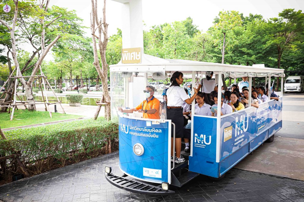 บนรถราง (Campus Tour) ณ อาคารสำนักงานอธิการบดี มหาวิทยาลัยมหิดล ศาลายา