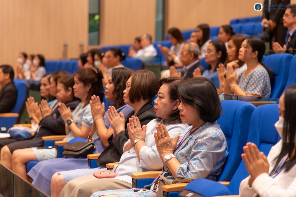 จำนวน 30 รูป จากนั้น เป็นพิธีบำเพ็ญกุศลถวายเป็นพระราชกุศล พิธีถวายพระพรชัยมงคล เพื่อเป็นการแสดงความจงรักภักดี และสำนึกในพระมหากรุณาธิคุณแด่สมเด็จพระบรมราชชนนีพันปีหลวง โอกาสนี้ หอสมุดและคลังความรู้มหาวิทยาลัยมหิดล นำโดย คุณอังคณา อินทรพาณิชย์ รองผู้อำนวยการฝ่ายบริหารและพัฒนาคุณภาพ อาจารย์ ดร.เอกชัย วารินศิริรักษ์ รองผู้อำนวยการฝ่ายนวัตกรรมบริการห้องสมุด และบุคลากรฯ เข้าร่วมพิธีในครั้งนี้ ในวันศุกร์ที่ 9 สิงหาคม พ.ศ. 2567 ณ อาคารสำนักงานอธิการบดี มหาวิทยาลัยมหิดล
