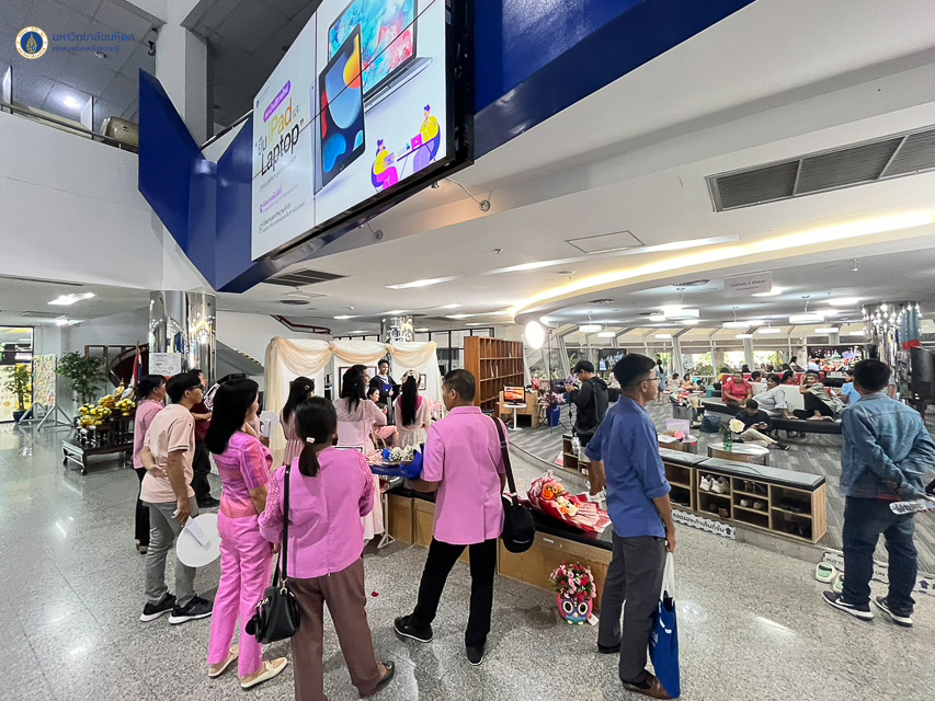 หอสมุดและคลังความรู้มหาวิทยาลัยมหิดล ได้เปิดพื้นที่นั่งพักคอยสำหรับบัณฑิต ผู้ปกครองและญาติบัณฑิต ในพิธีพระราชทานปริญญาบัตรแก่ผู้สำเร็จการศึกษาจากมหาวิทยาลัยมหิดล ประจำปีการศึกษา 2566 นอกจากเปิดบริการพื้นที่นั่งพักคอยแล้ว ยังมีบริการ จัดแสดงนิทรรศการทรัพยากรสารสนเทศด้านดนตรีอันทรงคุณค่าที่หาชมได้ยาก โดยห้องสมุดดนตรีสมเด็จพระเทพรัตน์ กิจกรรมหนังสือเปลี่ยนมือ เพื่อส่งมอบหนังสือที่อยู่ในสภาพดีให้กับผู้ที่มีความต้องการต่อไป พร้อมทั้งจัดพื้นที่นั่งรับชมการถ่ายทอดสดพิธีพระราชทานปริญญาบัตร และจุดบริการถ่ายรูปเพื่อแสดงความยินดีกับบัณฑิต ระหว่างวันที่ 6 และ 8-9 ตุลาคม พ.ศ. 2567 ที่ผ่านมา ณ หอสมุดและคลังความรู้ฯ ศาลายา ซึ่งมีบัณฑิต ผู้ปกครองและญาติบัณฑิตเข้าใช้บริการจำนวนทั้งสิ้น 2,118 คน