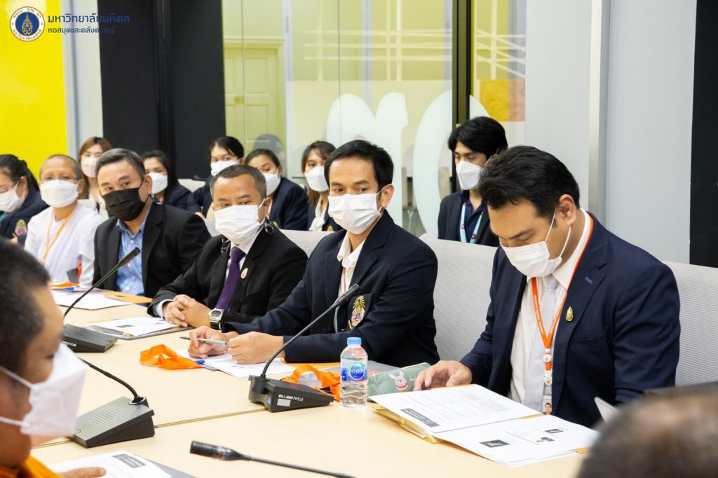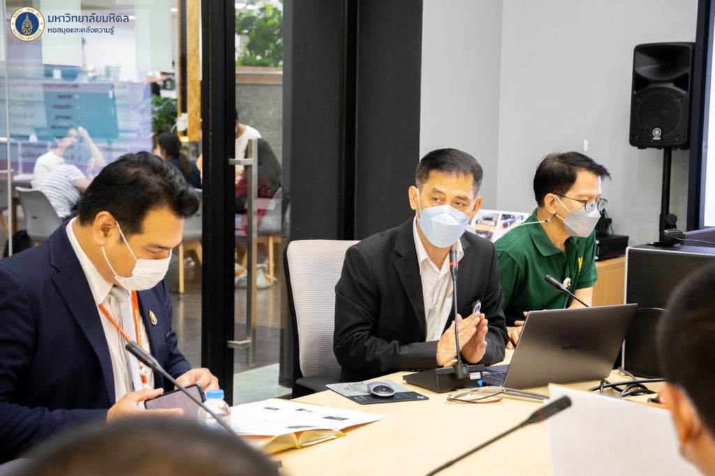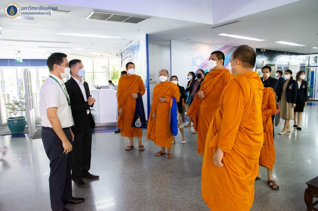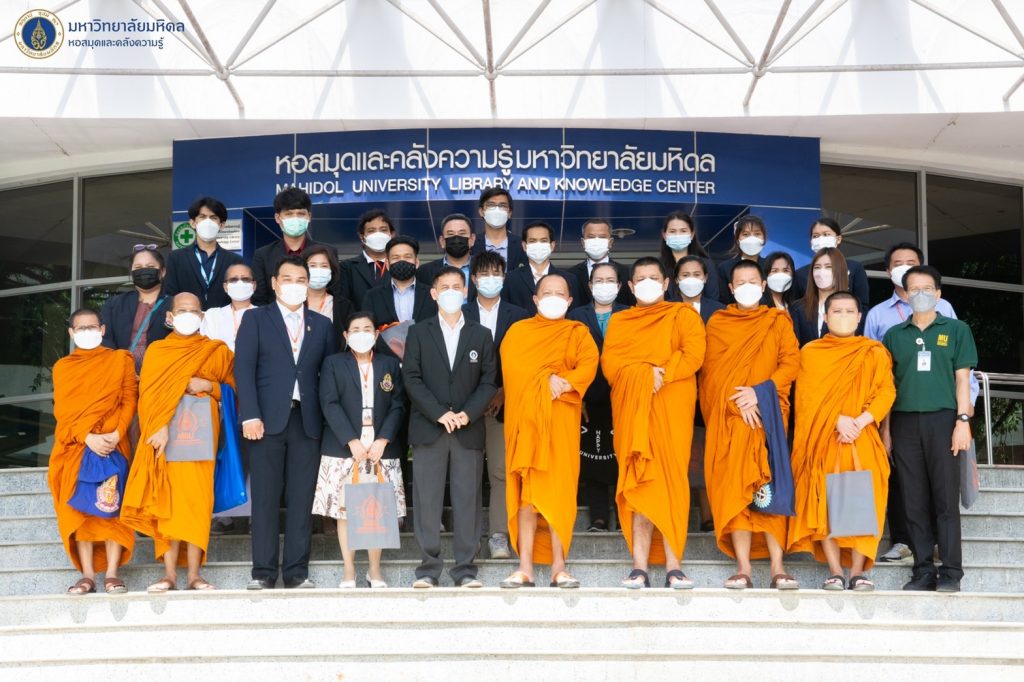 หอสมุดและคลังความรู้มหาวิทยาลัยมหิดล โดยผู้ช่วยศาสตราจารย์ ดร.นพพล เผ่าสวัสดิ์ ผู้อำนวยการหอสมุดและคลังความรู้ฯ และดร.อภิภู สิทธิภูมิมงคล รองผู้อำนวยการฝ่ายเทคโนโลยีการศึกษาและพันธกิจพิเศษ ให้การต้อนรับคณะผู้ศึกษาดูงานจาก มหาวิทยาลัยมหามกุฎราชวิทยาลัย โดยพระมหาฉัตรชัย สุฉตฺตชโย, ผศ.ดร. รองอธิการบดีด้านวิชาการและพัฒนาคุณภาพ มหาวิทยาลัยมหามกุฏราชวิทยาลัย และคณะฯ เข้าเยี่ยมชมหอสมุดและคลังความรู้ฯ ซึ่งเป็นพระภิกษุสงฆ์จำนวน 6 รูป และบุคลากรฯจำนวน 22 คน ในวันพุธที่ 10 สิงหาคม 2565 ที่ผ่านมา
