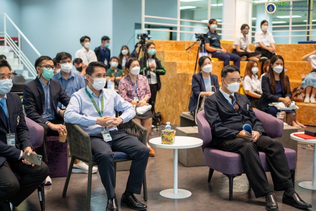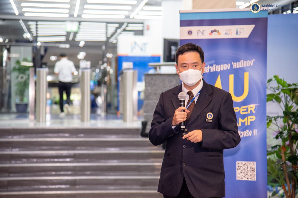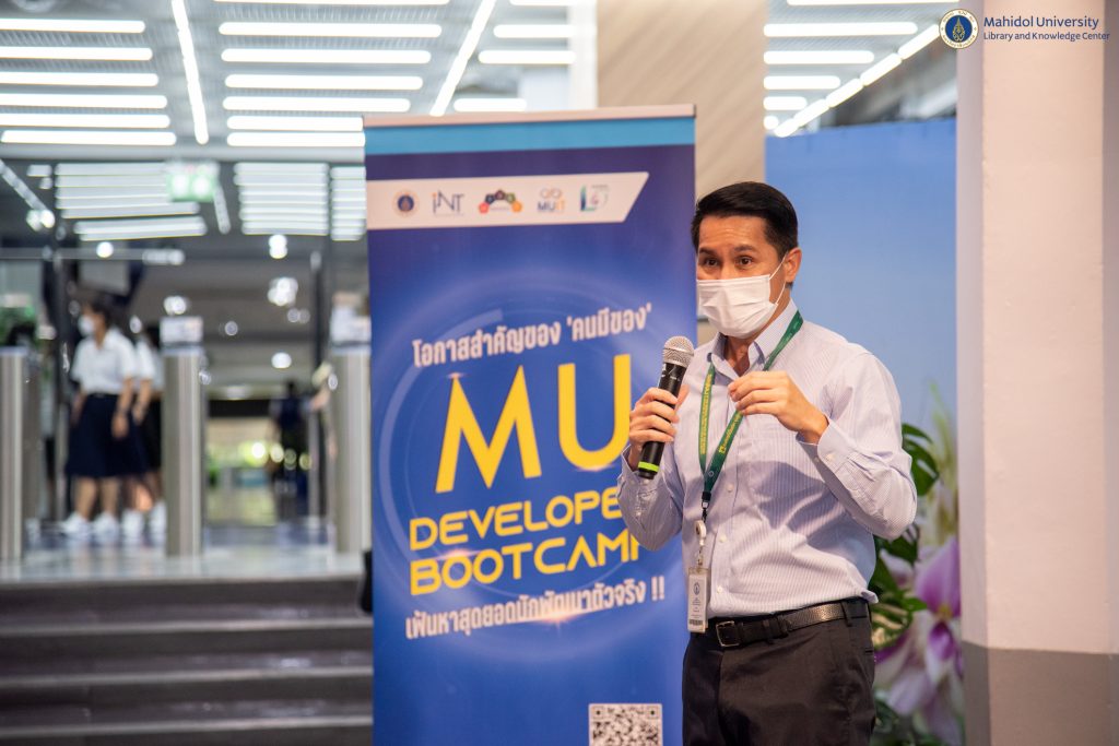 หอสมุดและคลังความรู้มหาวิทยาลัยมหิดล โดยผู้ช่วยศาสตราจารย์ ดร.นพพล เผ่าสวัสดิ์ ผู้อำนวยการหอสมุดและคลังความรู้ฯ ให้การต้อนรับ ผู้ช่วยศาสตราจารย์ ดร.ธัชวีร์ ลีละวัฒน์ รองอธิการบดีฝ่ายสารสนเทศและวิทยาเขตกาญจนบุรี เป็นประธานกล่าวเปิดงาน MU Developer Bootcamp: Journey to be Data Scientist ณ บริเวณ ชั้น 1 Co-MU Space อาคารหอสมุดและคลังความรู้มหาวิทยาลัยมหิดล ศาลายา และผ่านระบบออนไลน์ WebX Meeting และ IPTV  เมื่อวันที่ 11 สิงหาคม 2565 ที่ผ่านมา