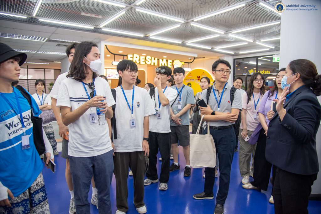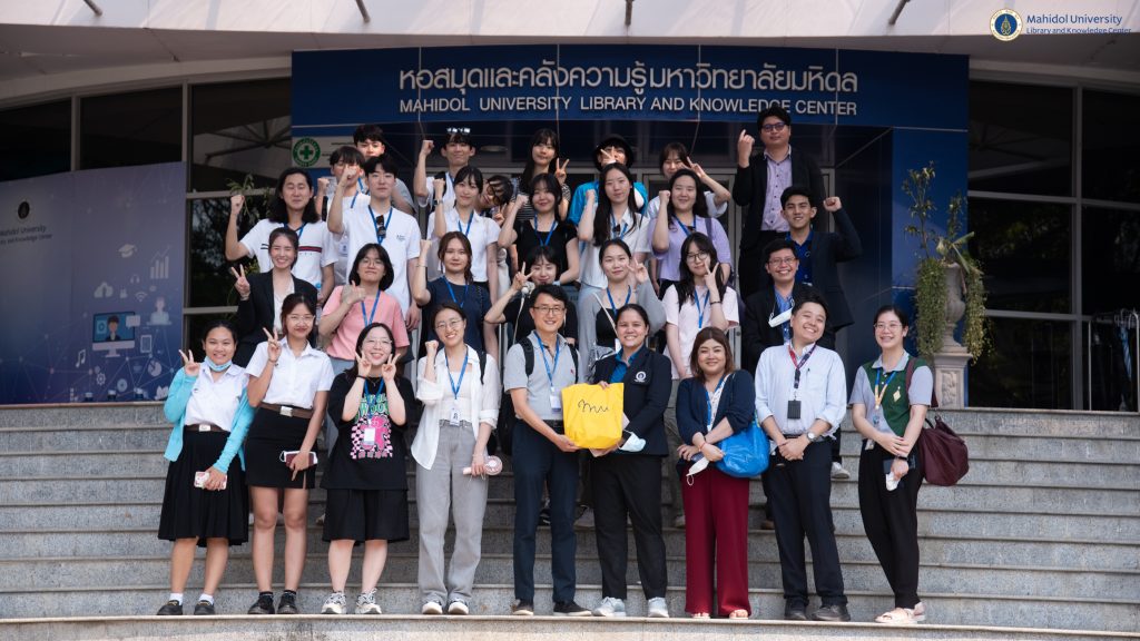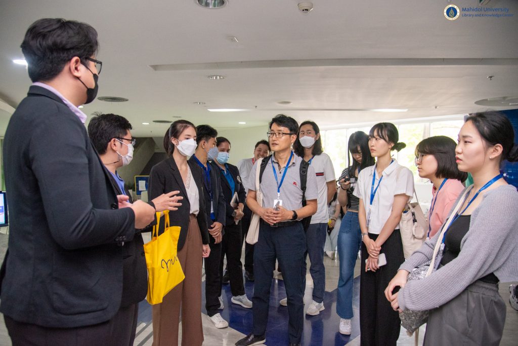 วันพฤหัสบดีที่ 11 มกราคม 2567 หอสมุดและคลังความรู้มหาวิทยาลัยมหิดล ให้การต้อนรับคณะผู้ศึกษาดูงานจาก College of Korean Medicine, Kyung Hee University, Republic of Korea นำโดย Prof.Sanghoon Lee อาจารย์จาก College of Korean Medicine และนักศึกษาจาก Kyung Hee University พร้อมด้วย พท.ป.ปาริมา บุญพร แพทย์แผนไทยประยุกต์ คณะแพทยศาสตร์ศิริราชพยาบาล มหาวิทยาลัยมหิดล ณ อาคารหอสมุดและคลังความรู้มหาวิทยาลัยมหิดล โดยการประสานงานจากสถานการแพทย์แผนไทยประยุกต์ คณะแพทยศาสตร์ศิริราชพยาบาล อีกทั้ง คณะผู้ศึกษาดูงานฯ ได้เข้าเยี่ยมชมนิทรรศการ Wisdom of the Land ณ ศูนย์การเรียนรู้มหิดล โดยฝ่ายจดหมายเหตุและพิพิธภัณฑ์ หอสมุดและคลังความรู้ฯ ให้การต้อนรับ ในครั้งนี้