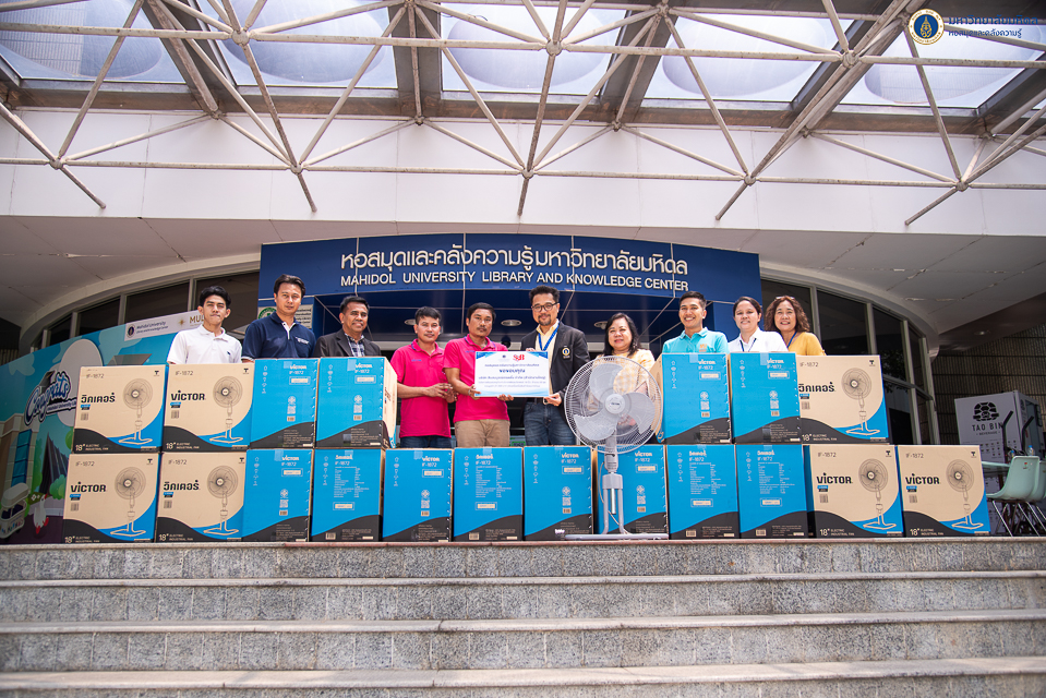 หอสมุดและคลังความรู้มหาวิทยาลัยมหิดล โดย ผู้ช่วยศาสตราจารย์ ดร.สราวุธ เวชกิจ ผู้อำนวยการหอสมุดและคลังความรู้ฯ รับมอบสิ่งของสนับสนุนจากผู้แทนจากบริษัท สินสมบูรณ์เทรดดิ้ง จำกัด (สำนักงานใหญ่) ในโอกาสมอบครุภัณฑ์บริจาคพัดลมวิคเตอร์ ขนาด 18 นิ้ว จำนวน 20 ชุด รวมมูลค่า 21,500 บาท ในวันศุกร์ที่ 11 ตุลาคม พ.ศ. 2567 ณ อาคารหอสมุดและคลังความรู้ฯ ศาลายา เพื่อร่วมสนับสนุนการให้บริการของหอสมุดและคลังความรู้ฯ และอำนวยความสะดวกให้กับนักศึกษา อาจารย์ และบุคลากรมหาวิทยาลัยมหิดล อย่างมีประสิทธิภาพมากยิ่งขึ้น