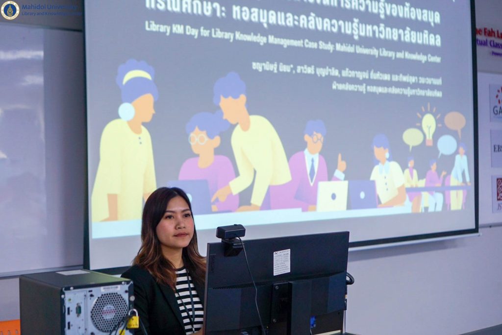 6.Library KM Day เพื่อการจัดการความรู้ของห้องสมุดกรณีศึกษา: หอสมุดและคลังความรู้มหาวิทยาลัยมหิดล โดย คุณสาวิตรี บุญปาลิต หัวหน้าฝ่ายคลังความรู้, คุณทิพย์สุดา วนะวนานนท์ หัวหน้างานเผยแพร่ผลงานวิชาการของมหาวิทยาลัย, คุณชญานิษฐ์ นิยม บรรณารักษ์ งานเผยแพร่ผลงานวิชาการของมหาวิทยาลัย และคุณแก้วกาญจน์ ถิ่นหัวเตย บรรณารักษ์ งานการจัดการความรู้
