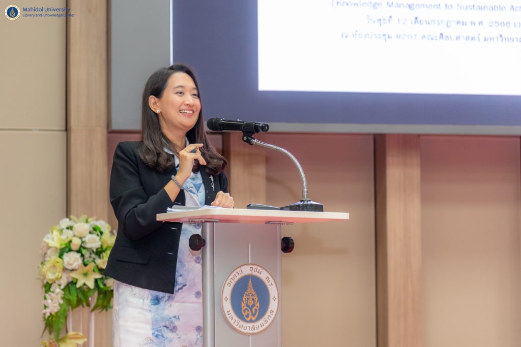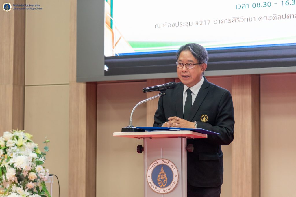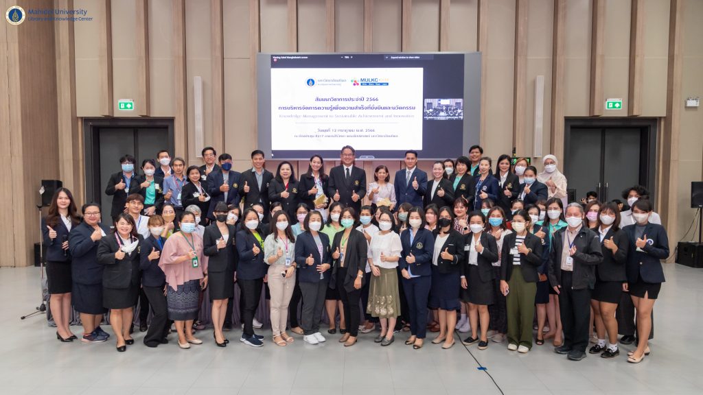 หอสมุดและคลังความรู้มหาวิทยาลัยมหิดล ได้รับเกียรติจาก รองศาสตราจารย์ ดร. ภก.สมภพ ประธานธุรารักษ์ รองอธิการบดีฝ่ายพัฒนาคุณภาพและบริการวิชาการ มหาวิทยาลัยมหิดล เป็นประธานกล่าวเปิดการสัมมนาวิชาการ ประจำปี 2566 ในหัวข้อ “การบริหารจัดการความรู้เพื่อความสำเร็จที่ยั่งยืนและนวัตกรรม” ในโอกาสนี้ ผู้ช่วยศาสตราจารย์ ดร.นพพล เผ่าสวัสดิ์ ผู้อำนวยการหอสมุดและคลังความรู้ฯ กล่าวรายงานวัตถุประสงค์การจัดสัมมนาวิชาการฯ ในครั้งนี้ เมื่อวันพุธที่ 12 กรกฎาคม พ.ศ. 2566 ที่ผ่านมา ณ ห้องประชุม R217 อาคารสิริวิทยา คณะศิลปศาสตร์ มหาวิทยาลัยมหิดล และผ่านระบบออนไลน์ WebEx Meeting Facebook Live และ IPTV