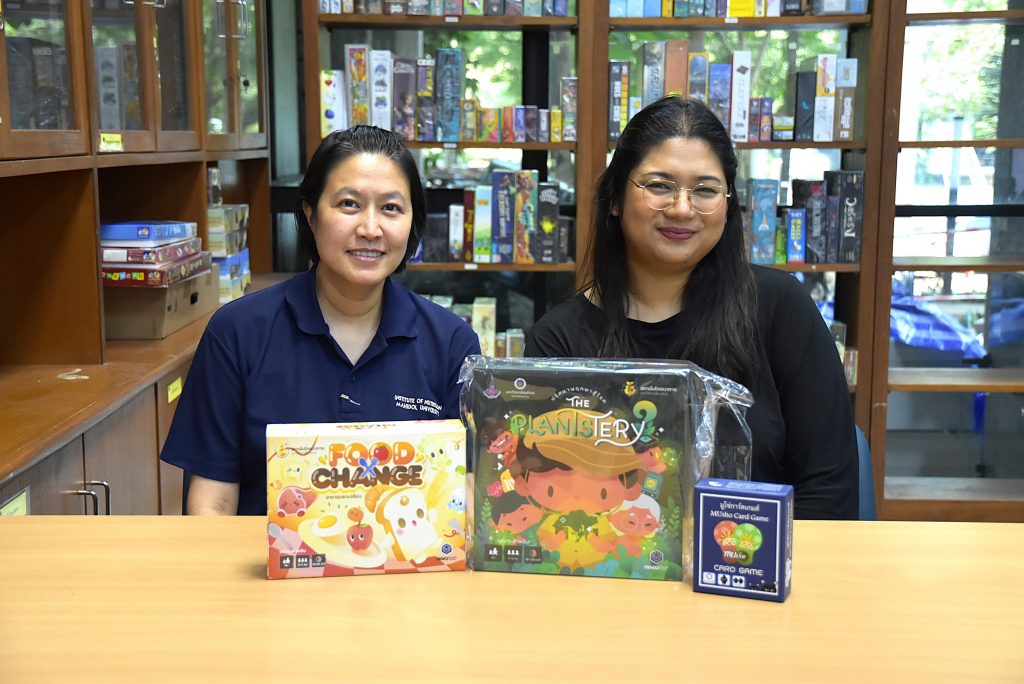 วันพุธที่ 12 พฤศจิกายน 2568 รศ.ดร.อุทัยวรรณ สุทธิศันสนีย์ และคุณปัณฑารีย์ ศิริชัย อาจารย์และนักกำหนดอาหาร หน่วยมนุษยโภชนาการ กลุ่มวิชาการและวิจัยด้านอาหารและโภชนาการ สถาบันโภชนาการ มหาวิทยาลัยมหิดล ได้มอบบอร์ดเกมจำนวน 3 เกม ได้แก่ The Plantstery, Food Change และ MUsho Card Game ซึ่งเป็นผลงานจากทีมวิจัย INMU Board Game สถาบันโภชนาการ ให้กับห้องบอร์ดเกมของหอสมุดและคลังความรู้ฯ เพื่อใช้เป็นสื่อการเรียนรู้สำหรับนักศึกษาและผู้ใช้บริการ
