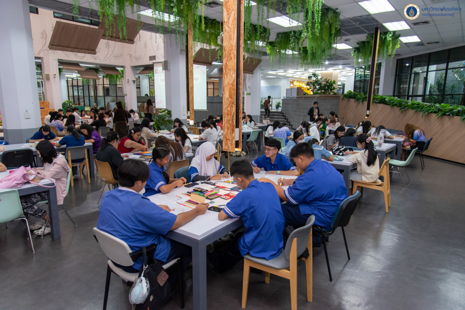 หอสมุดและคลังความรู้มหาวิทยาลัยมหิดล โดย อาจารย์ ดร.เอกชัย วารินศิริรักษ์ รองผู้อำนวยการฝ่ายนวัตกรรมบริการห้องสมุด เป็นประธานกล่าวเปิดกิจกรรม “CSR Day วันจิตอาสาพัฒนาห้องสมุด ครั้งที่ 8” ในวันศุกร์ที่ 13 ธันวาคม พ.ศ 2567 ณ Co-MU Space ชั้น 1 อาคารหอสมุดและคลังความรู้ฯ ศาลายา โดยกิจกรรม CSR Day ในครั้งนี้ เป็นการจัดกิจกรรมออกแบบระบายสีกระดาษ สำหรับติดถุงกระดาษใส่ยา เพื่อนำไปมอบให้สถานพยาบาล และกิจกรรมการจัดทำสมุดทำมือคัดเขียนเรียนรู้เพื่อส่งมอบให้กับสถานศึกษาเด็กและเยาวชนที่มีความต้องการในบริเวณโดยรอบมหาวิทยาลัยมหิดล ซึ่งกิจกรรมในครั้งนี้มีนักเรียน นักศึกษามหาวิทยาลัยมหิดล เข้าร่วมจำนวน 120 คน โดยผู้ที่เข้าร่วมกิจกรรมจะได้รับชั่วโมงในการเข้าร่วมกิจกรรมด้านจิตอาสา 3 ชั่วโมง ซึ่งส่งเสริมและสร้างการมีส่วนร่วมในการพัฒนาห้องสมุดอย่างยั่งยืนในอนาคต