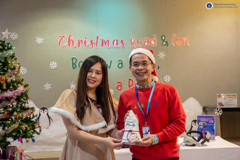 หอสมุดและคลังความรู้มหาวิทยาลัยมหิดล โดย คุณนภัสวรรณ สุพัตร หัวหน้างานเทคโนโลยีการศึกษา ได้รับเกียรติเป็นวิทยากรบรรยายสาธิตการใช้แว่น VR ในกิจกรรม “Christmas Fun with VR” ให้กับนักเรียนโรงเรียนสาธิตนานาชาติ มหาวิทยาลัยมหิดล ในโอกาสนี้ได้รับเกียรติจาก รองศาสตราจารย์ ดร.สิงหนาท น้อมเนียน ผู้อำนวยการโรงเรียนสาธิตนานาชาติ มหาวิทยาลัยมหิดล ให้การต้อนรับ ในวันศุกร์ที่ 13 ธันวาคม พ.ศ. 2567 ณ ห้องสมุด โรงเรียนสาธิตนานาชาติ มหาวิทยาลัยมหิดล ศาลายา กิจกรรมในครั้งนี้มีวัตถุประสงค์เพื่อส่งเสริมการอ่าน และเปิดโอกาสให้นักเรียนได้เรียนรู้การใช้สื่อเทคโนโลยีทางการศึกษาในรูปแบบต่าง ๆ อย่างมีประสิทธิภาพ