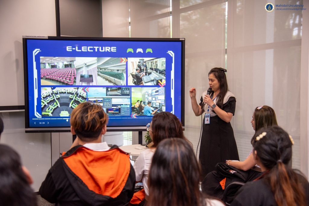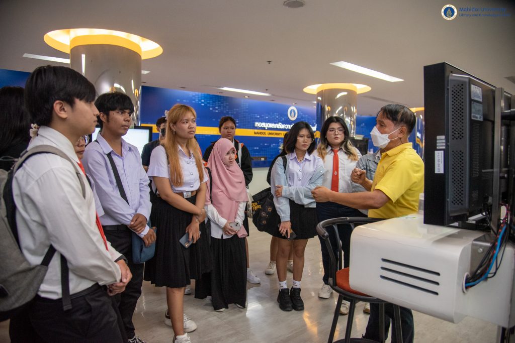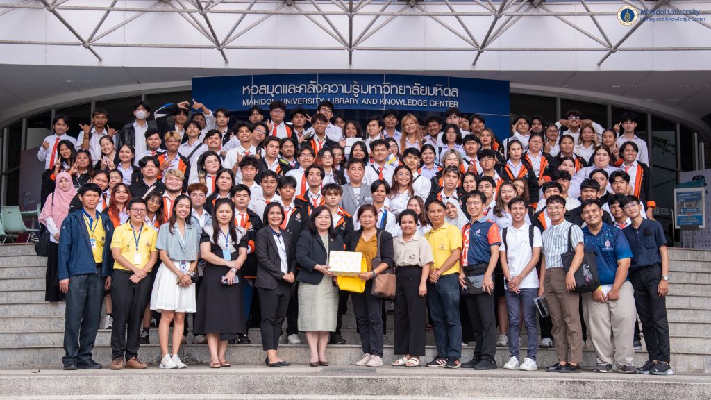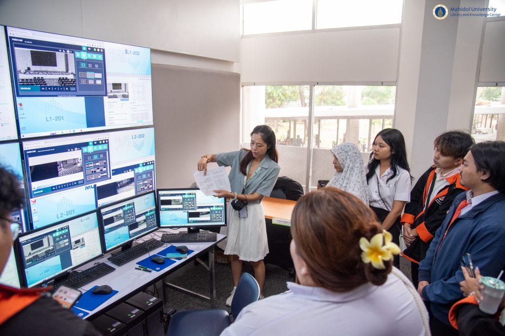 หอสมุดและคลังความรู้มหาวิทยาลัยมหิดล โดย คุณอังคณา อินทรพาณิชย์ รักษาการแทนรองผู้อำนวยการฝ่ายบริหารและพัฒนาคุณภาพห้องสมุด ให้การต้อนรับคณะผู้ศึกษาดูงานจาก หลักสูตรดิจิทัลคอนเทนต์และสื่อ สำนักวิชาสารสนเทศศาสตร์ มหาวิทยาลัยวลัยลักษณ์ นำโดย ดร.ยุทธนา เจริญรื่น หัวหน้าสาขาหลักสูตรดิจิทัลคอนเทนต์และสื่อ สำนักวิชาสารสนเทศศาสตร์ มหาวิทยาลัยวลัยลักษณ์ พร้อมด้วยอาจารย์และนักศึกษาฯ จำนวน 95 ท่าน ในวันจันทร์ที่ 13 พฤษภาคม 2567 โดยมีวัตถุประสงค์เพื่อศึกษาดูงานการจัดการทรัพยากรการเรียนรู้ การจัดการระบบ MU e-Lecture ณ หอสมุดและคลังความรู้ฯ และเข้าเยี่ยมชมหอพระราชประวัติสมเด็จพระบรมราชชนก และนิทรรศการ Wisdom of the Land ณ อาคารศูนย์การเรียนรู้มหิดล