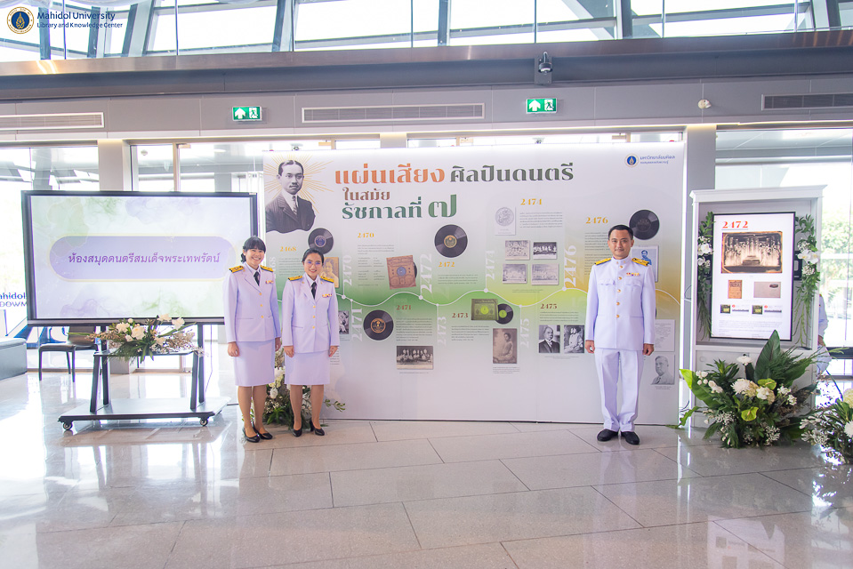 ในการนี้ สมเด็จพระกนิษฐาธิราชเจ้า กรมสมเด็จพระเทพรัตนราชสุดาฯ สยามบรมราชกุมารี ทรงเปิดนิทรรศการครบรอบ 100 ปี บรมราชาภิเษกสมโภชของพระบาทสมเด็จพระปกเกล้าเจ้าอยู่หัว รัชกาลที่ 7 โดยเป็นความร่วมมือระหว่าง หอสมุดและคลังความรู้มหาวิทยาลัยมหิดล กับ สถาบันพระปกเกล้า มหาวิทยาลัยสุโขทัยธรรมาธิราช และมูลนิธิหลวงประดิษฐไพเราะ (ศร ศิลปบรรเลง) จัดแสดงขึ้น อันประกอบด้วย พระราชประวัติ พระราชกรณียกิจและงานบรมราชาภิเษก พระราชนิยมและพระราชกรณียกิจด้าน ดนตรี นาฏกรรม อันเป็นคุณค่าที่เกิดขึ้นในสมัยพระบาทสมเด็จพระปกเกล้าเจ้าอยู่หัว ซึ่งห้องสมุดดนตรีสมเด็จพระเทพรัตน์ หอสมุดและคลังความรู้ฯ ร่วมจัดแสดงนิทรรศการ เรื่อง “แผ่นเสียง ศิลปินดนตรี ในสมัยรัชกาลที่ 7” โดยจัดแสดงข้อมูลทรัพยากรที่เกี่ยวข้องทางด้านดนตรีอันทรงคุณค่าในรัชสมัยพระบาทสมเด็จพระปกเกล้าเจ้าอยู่หัว อันประกอบด้วย แผ่นเสียงชนิดต่าง ๆ โน้ตเพลง งานบันทึกเสียง หนังสือเพลง ฯลฯ โดยจัดแสดง ณ พิพิธภัณฑ์ดนตรีอุษาคเนย์ วิทยาลัยดุริยางคศิลป์ มหาวิทยาลัยมหิดล ศาลายา ตั้งแต่วันที่ 15 – 28 กุมภาพันธ์ พ.ศ. 2568 และสามารถรับชมในรูปแบบออนไลน์ผ่านทาง https://museum.li.mahidol.ac.th/smlibrary-musicrama7/