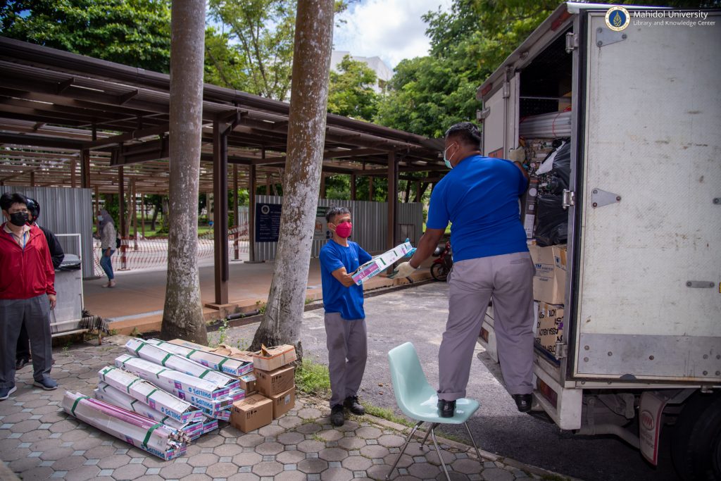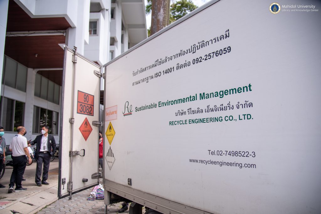 หอสมุดและคลังความรู้มหาวิทยาลัยมหิดล โดย ดร.อภิภู สิทธิภูมิมงคล รองผู้อำนวยการฝ่ายเทคโนโลยีการศึกษาและพันธกิจพิเศษ เป็นประธานส่งมอบขยะอันตรายชุมชนให้กับบริษัทรีไซเคิลเอ็นจิเนียริ่ง จำกัด ซึ่งดำเนินการภายใต้โครงการจัดการขยะอันตรายชุมชน งานภูมิทัศน์และสิ่งแวดล้อม กองกายภาพและสิ่งแวดล้อม มหาวิทยาลัยมหิดล
