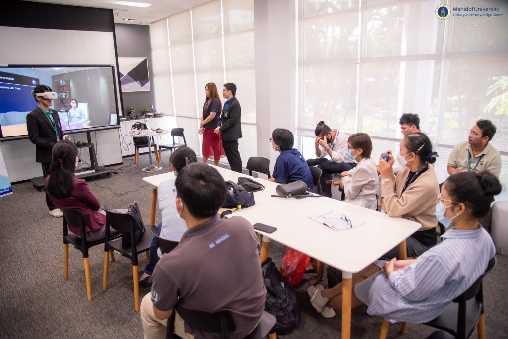สาขาการศึกษาวิทยาศาสตร์สุขภาพ (นานาชาติ) คณะแพทยศาสตร์ศิริราชพยาบาล มหาวิทยาลัยมหิดล จำนวน 12 ท่าน ในการเข้าเยี่ยมชมการให้บริการแว่น VR และงานเทคโนโลยีการศึกษา