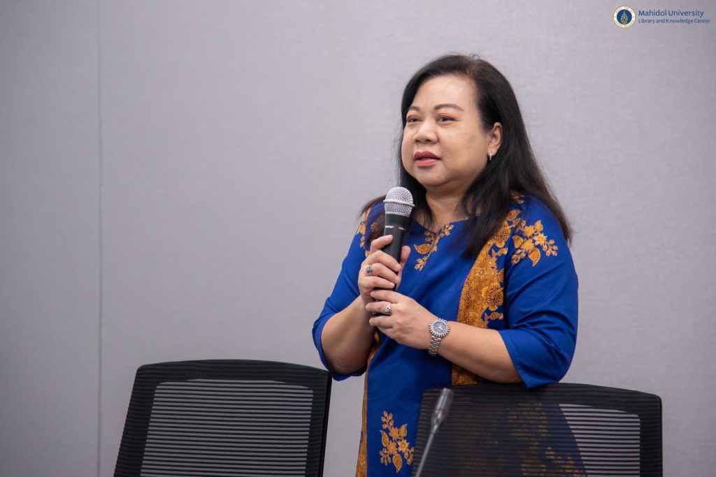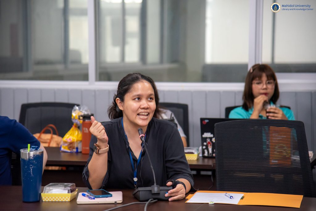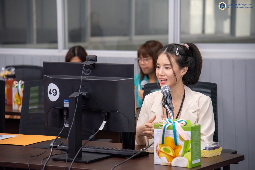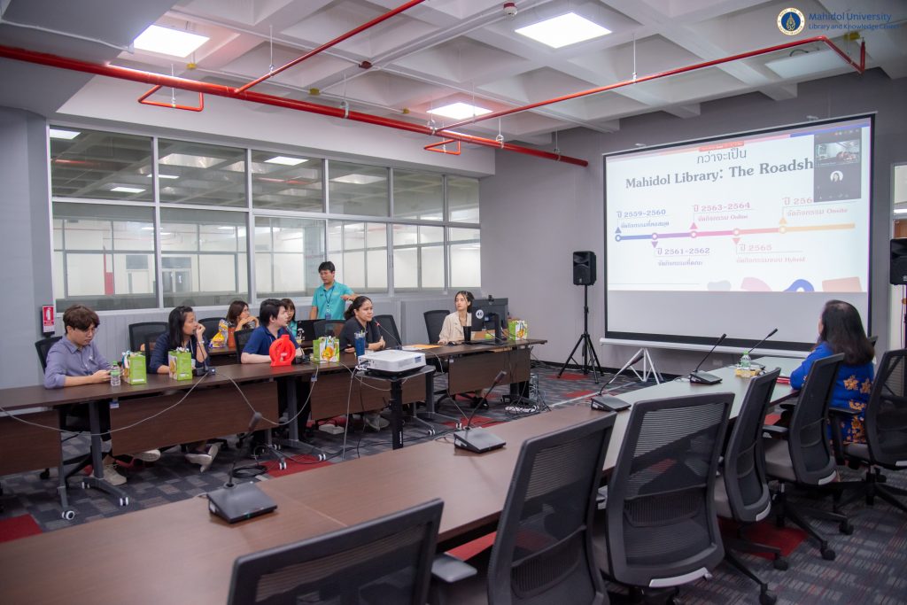 หอสมุดและคลังความรู้มหาวิทยาลัยมหิดล โดย คุณอังคณา อินทรพาณิชย์ รองผู้อำนวยการฝ่ายบริหารและพัฒนาคุณภาพห้องสมุด เป็นประธานกล่าวเปิดกิจกรรม LIBRARY KM DAY ครั้งที่ 9 ประจำปี 2567 ในหัวข้อ “Library Roadshow & Library Orientation” ในวันศุกร์ที่ 15 มีนาคม 2567 เวลา 09.30 – 11.30 น. ณ Meeting Room 2 ชั้น 3 อาคารหอสมุดและคลังความรู้ฯ ศาลายา และในรูปแบบออนไลน์ผ่านระบบ Cisco Webex Meeting โดยมีวิทยากรผู้เชี่ยวชาญ จำนวน 5 ท่าน ได้แก่ หม่องหลวงรติกร วรวุฒิ หัวหน้าหอสมุดกลาง คุณมุกรินทร์ กลั่นภักดี นักเอกสารสนเทศ หอสมุดกลาง คุณศุภสิทธิ ทองสุข นักเอกสารสนเทศ หอสมุดกลาง คุณศรัณย์ ธรรมทักษิณ นักเอกสารสนเทศ งานเทคโนโลยีสารสนเทศ และคุณอาทิตยา ทรัพย์สิน นักเอกสารสนเทศ งานเทคโนโลยีสารสนเทศ เป็นผู้แลกเปลี่ยนเรียนรู้ประสบการณ์การทำงานในครั้งนี้ ซึ่งกิจกรรม LIBRARY KM DAY ในครั้งนี้มีผู้เข้าร่วมการอบรมทั้งสิ้น 60 คน