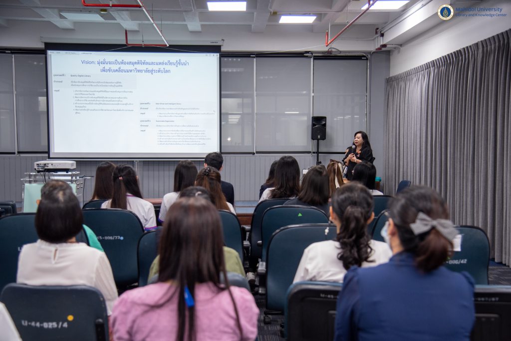 หอสมุดและคลังความรู้มหาวิทยาลัยมหิดล โดย ผู้ช่วยศาสตราจารย์ ดร.นพพล เผ่าสวัสดิ์ รักษาการแทนผู้อำนวยการหอสมุดและคลังความรู้ฯ และคุณอังคณา อินทรพาณิชย์ รักษาการแทนรองผู้อำนวยการฝ่ายบริหารและพัฒนาคุณภาพห้องสมุด ให้การต้อนรับคณะผู้ศึกษาดูงานจากหอสมุดแห่งมหาวิทยาลัยธรรมศาสตร์ นำโดยคุณชัยสิทธิ์ อังคะปัญญาเดช หัวหน้างานบริการท่าพระจันทร์ ในวันพุธที่ 15 พฤษภาคม 2567 ณ อาคารหอสมุดและคลังความรู้มหาวิทยาลัยมหิดล โดยมีวัตถุประสงค์เพื่อศึกษาดูงานด้านงานบริการทรัพยากรสารสนเทศและพื้นที่การให้บริการ เพื่อนำไปประยุกต์ใช้กับหอสมุดแห่งมหาวิทยาลัยธรรมศาสตร์ต่อไปในอนาคต