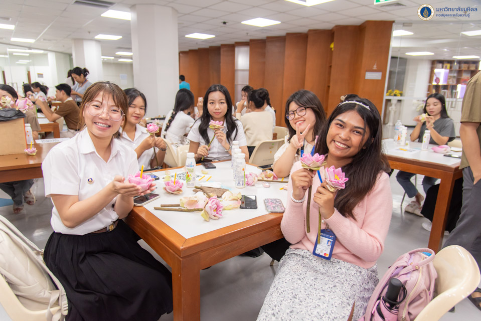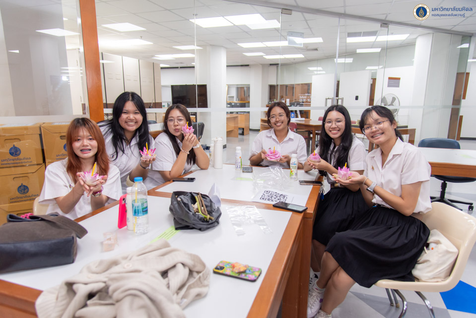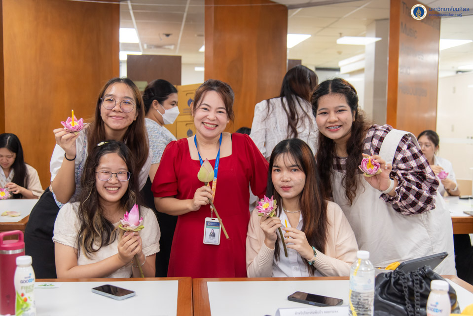 หอสมุดและคลังความรู้มหาวิทยาลัยมหิดล ดำเนินการจัด “โครงการอัศจรรย์กระทงดอกบัว” โดยคณะกรรมการสร้างสุของค์กรและบุคลากรสัมพันธ์ หอสมุดและคลังความรู้มหาวิทยาลัยมหิดล ในวันศุกร์ที่ 15 พฤศจิกายน พ.ศ. 2567 ณ ชั้น 3 อาคารหอสมุดและคลังความรู้ฯ ศาลายา โดยมีนักศึกษาและบุคลากรสนใจเข้าร่วมกิจกรรมทั้งสิ้นจำนวน 103 คน กิจกรรมในครั้งนี้มีวัตถุประสงค์เพื่อสืบสานประเพณีลอยกระทงอันดีงามของไทย พร้อมทั้งส่งเสริมให้นักศึกษา อาจารย์ และบุคลากรมหาวิทยาลัยมหิดลได้มีส่วนร่วมในการอนุรักษ์ธรรมชาติและสิ่งแวดล้อม โดยการประดิษฐ์กระทงดอกบัว ซึ่งเป็นวัสดุจากธรรมชาติที่ย่อยสลายง่าย เพื่อลดปริมาณขยะในแหล่งน้ำที่อาจเกิดขึ้นจากการร่วมประเพณีลอยกระทง