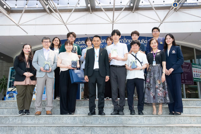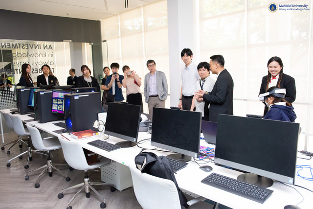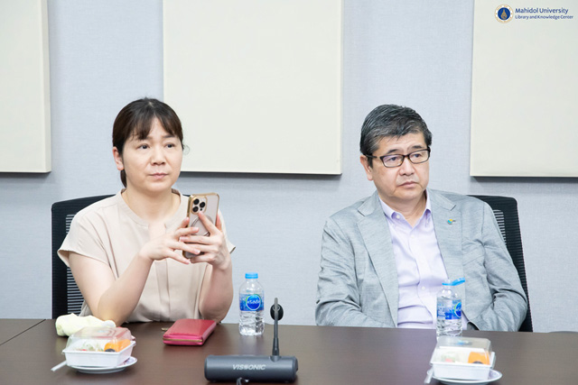 หอสมุดและคลังความรู้มหาวิทยาลัยมหิดล นำโดย อาจารย์ ดร.เอกชัย วารินศิริรักษ์ รองผู้อำนวยการฝ่ายนวัตกรรมบริการห้องสมุด พร้อมด้วยบุคลากร ให้การต้อนรับคณะผู้ศึกษาดูงานจาก National University Corporation Tsukuba University of Technology ประเทศญี่ปุ่น ซึ่งนำโดย Assoc. Prof. Yoko Kobayashi กรรมการคณะกรรมการแลกเปลี่ยนนานาชาติ (International Exchange Committee) พร้อมบุคลากรและนักศึกษา จำนวน 7 ท่าน โดยการประสานงานจากคณะแพทยศาสตร์โรงพยาบาลรามาธิบดี และสถาบันราชสุดา ภายใต้กรอบความร่วมมือโครงการแลกเปลี่ยนนานาชาติ (International Exchange Program) ทั้งนี้ ได้รับเกียรติจากอาจารย์ นายแพทย์สมเกียรติ ลีละศิธร ผู้อำนวยการสถาบันราชสุดา ร่วมให้การต้อนรับ ในวันจันทร์ที่ 16 กุมภาพันธ์ พ.ศ. 2569 ณ อาคารหอสมุดและคลังความรู้ฯ ศาลายา