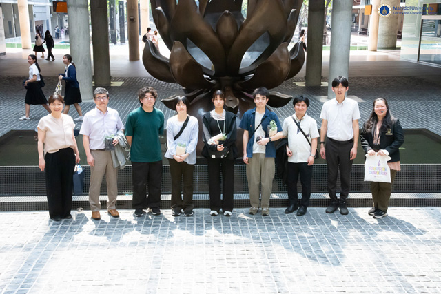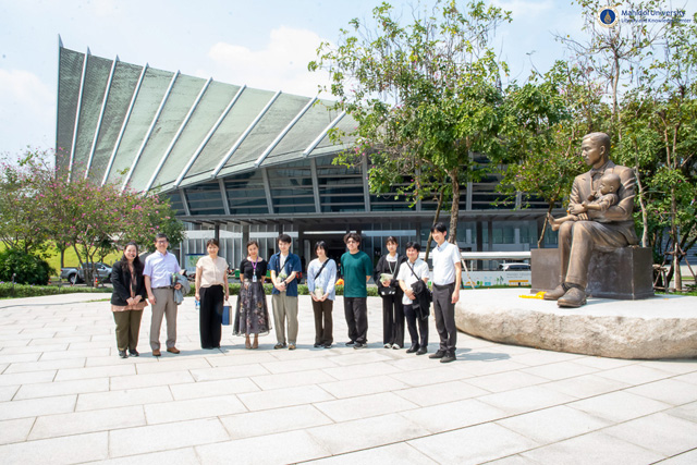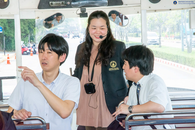 จากนั้น คณะผู้ศึกษาดูงานได้เข้าร่วมกิจกรรม Campus Tour โดยฝ่ายจดหมายเหตุและพิพิธภัณฑ์ เป็นผู้ให้การต้อนรับและนำเยี่ยมชมพื้นที่โดยรอบมหาวิทยาลัย ซึ่งการศึกษาดูงานในครั้งนี้มีวัตถุประสงค์เพื่อเยี่ยมชมและศึกษาการดำเนินงานด้านบริการและทรัพยากรสารสนเทศของหอสมุดและคลังความรู้ฯ ซึ่งสนับสนุนพันธกิจด้านการศึกษา การวิจัย และการบริการวิชาการ อันจะก่อให้เกิดประโยชน์สูงสุดแก่คณะผู้ศึกษาดูงานจากสถาบันต่างประเทศ