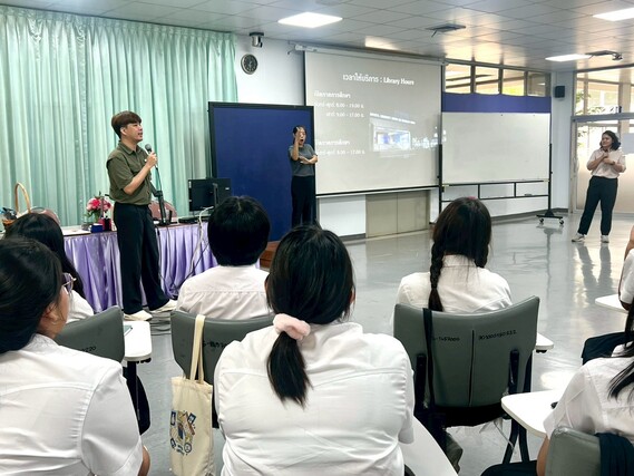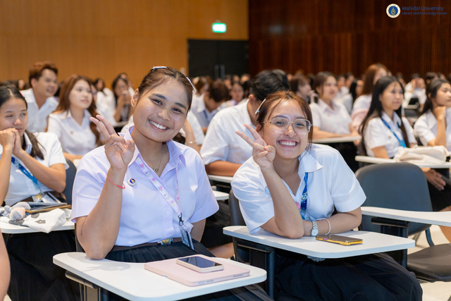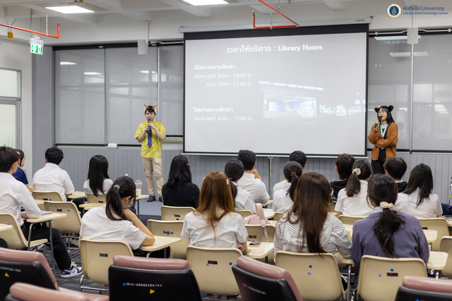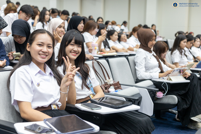 หอสมุดและคลังความรู้ฯ จัดกิจกรรม “Mahidol Library The Roadshow 2025” ภายใต้โครงการปฐมนิเทศการใช้ห้องสมุดสำหรับนักศึกษาระดับปริญญาตรี ชั้นปีที่ 1 ปีการศึกษา 2568 ตั้งแต่วันที่ 16 กรกฎาคม – 10 กันยายน 2568 ให้กับคณะและสถาบันต่าง ๆ เพื่อเป็นการส่งเสริมให้นักศึกษาระดับปริญญาตรี ชั้นปีที่ 1 ได้รับข้อมูลข่าวสารและสิทธิประโยชน์ที่เกี่ยวกับการบริการต่าง ๆ และสามารถเข้าถึงทรัพยากรสารสนเทศของห้องสมุด อันเป็นรากฐานที่สำคัญของการศึกษาและพัฒนาศักยภาพในการค้นคว้าเพื่อการวิจัยในอนาคต โดยมีนักศึกษาเข้าร่วมทั้งหมด 2,783 คน และมีคณะ วิทยาลัย และสถาบันที่เข้าร่วมกิจกรรมดังต่อไปนี้