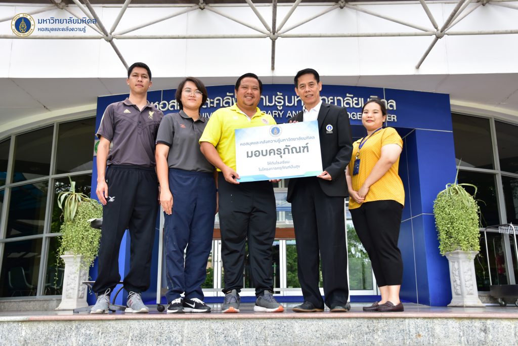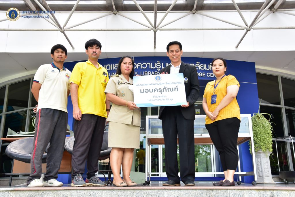 หอสมุดและคลังความรู้มหาวิทยาลัยมหิดล โดย ดร.อภิภู สิทธิภูมิมงคล รองผู้อำนวยการฝ่ายเทคโนโลยีการศึกษาและพันธกิจพิเศษ เป็นประธานส่งมอบครุภัณฑ์สำนักงานบริจาค ให้กับคุณอลิสรา จันทราช ผู้อำนวยการโรงเรียนวัดห้วยตะโก (บูรณธนิตราษฎร์รังสรรค์) และคุณวีรวุฒิ การวุฒิ คุณครูจากโรงเรียนคลองทางหลวง ในวันจันทร์ที่ 17 กรกฎาคม พ.ศ. 2566 ที่ผ่านมา ณ อาคารหอสมุดและคลังความรู้มหาวิทยาลัยมหิดล ศาลายา ทั้งนี้เพื่อนำไปใช้ประโยชน์ในการปฏิบัติราชการของโรงเรียนดังกล่าวต่อไป ซึ่งเป็นหนึ่งในโครงการพันธกิจเพื่อสังคม และโครงการหอสมุดและคลังความรู้มหาวิทยาลัยมหิดล ปันสุข ครุภัณฑ์ เพื่อชุมชน