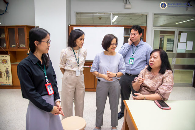 หอสมุดและคลังความรู้มหาวิทยาลัยมหิดล โดยคุณนภัสวรรณ สุพัตร นักวิชาการโสตทัศนศึกษา (ผู้ชำนาญการพิเศษ) ได้รับเชิญจากภาควิชาสรีรวิทยา คณะเภสัชศาสตร์ มหาวิทยาลัยมหิดล เป็นวิทยากรบรรยายให้ความรู้ในกิจกรรม “การประยุกต์ใช้เทคโนโลยี VR (Virtual Reality)” พร้อมด้วยคุณสรวิศ อัตตปรีชากุล นักวิชาการสารสนเทศ งานเทคโนโลยีการศึกษา คุณพัชรณัฏฐ์ คุณเจริญหิรัญ บรรณารักษ์ และคุณชนกชนม์ โรจน์บวรวิทยา เจ้าหน้าที่บริหารงานทั่วไป ห้องสมุดคณะเภสัชศาสตร์ มหาวิทยาลัยมหิดล ร่วมจัดกิจกรรมในครั้งนี้ให้กับอาจารย์และบุคลากรจากภาควิชาสรีรวิทยา คณะเภสัชศาสตร์ จำนวน 8 ท่าน ในโอกาสนี้ คุณอังคณา อินทรพาณิชย์ รองผู้อำนวยการฝ่ายบริหารและพัฒนาคุณภาพ เข้าร่วมกิจกรรมในครั้งนี้ ในวันพฤหัสบดีที่ 17 กรกฎาคม พ.ศ. 2568 ณ ห้อง 611 ชั้น 6 อาคารราชรัตน์ คณะเภสัชศาสตร์ มหาวิทยาลัยมหิดล เพื่อวัตถุประสงค์ในการนำเทคโนโลยีเสมือนจริงมาปรับใช้ในการเรียนการสอนเพื่อจัดการเรียนการสอนในรายวิชาปฏิบัติกายวิภาคศาสตร์และสรีรวิทยาต่อไปในอนาคต