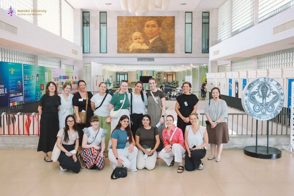 วันจันทร์ที่ 17 มิถุนายน พ.ศ. 2567 ฝ่ายจดหมายเหตุและพิพิธภัณฑ์ หอสมุดและคลังความรู้มหาวิทยาลัยมหิดลให้การต้อนรับอาจารย์และนักศึกษาพยาบาลในโครงการแลกเปลี่ยนจาก University pf Technology Sydney พร้อมด้วยผู้ประสานงานจากคณะแพทยศาสตร์โรงพยาบาลรามาธิบดี มหาวิทยาลัยมหิดล เยี่ยมชมหอพระราชประวัติสมเด็จพระบรมราชชนก และนิทรรศการ Wisdom of the Land ณ ศูนย์การเรียนรู้มหิดล และนำทัวร์รอบมหาวิทยาลัยโดยรถราง Campus Tour