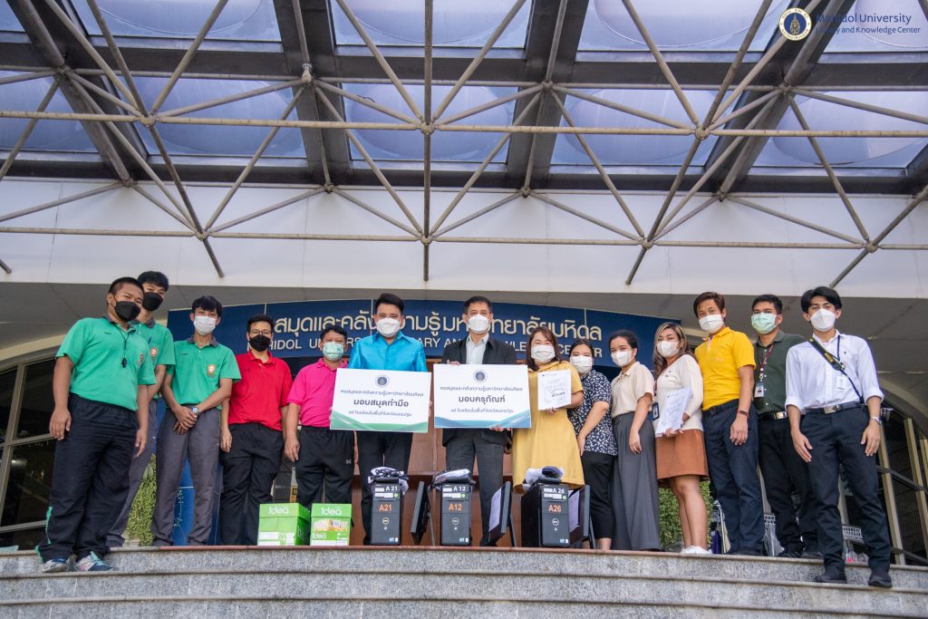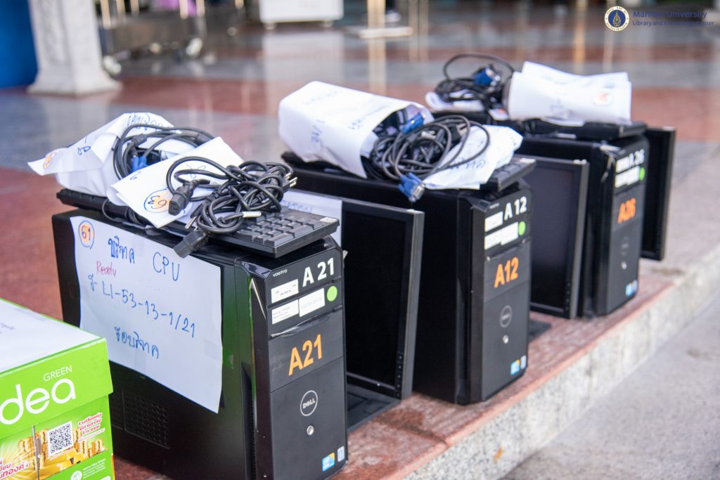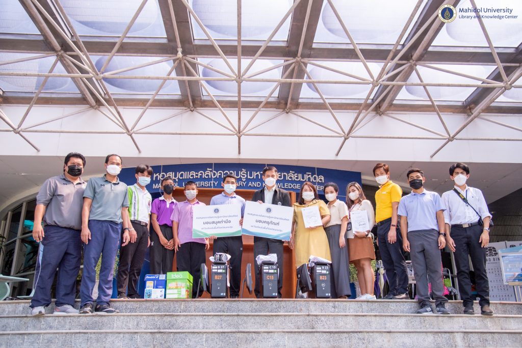 หอสมุดและคลังความรู้มหาวิทยาลัยมหิดล โดย ดร.อภิภู สิทธิภูมิมงคล รองผู้อำนวยการฝ่ายเทคโนโลยีการศึกษาและพันธกิจพิเศษ เป็นประธานส่งมอบครุภัณฑ์สำนักงานบริจาค อุปกรณ์ทางการศึกษา สมุดทำมือ 4 แบบ และชุดอุปกรณ์คอมพิวเตอร์ ให้กับโรงเรียนในเครือพุทธมณฑล โดยมอบให้กับ ดร.ธนกฤต ธรรมวณิชย์ ผู้อำนวยการโรงเรียนวัดสาลวัน คุณวสวัตติ์ เสรีอัครวัชร์ รักษาการผู้อำนวยการโรงเรียนบ้านบางเตย คุณสุวภัทร สุพลจิตร ผู้อำนวยการโรงเรียนวัดใหม่ห้วยลึก (บุญญานุสาสน์ประชาสรรค์) ในวันพฤหัสบดีที่ 17 พฤศจิกายน 2565 ที่ผ่านมา ณ อาคารหอสมุดและคลังความรู้มหาวิทยาลัยมหิดล ศาลายา ทั้งนี้เพื่อนำไปใช้ประโยชน์ในการปฏิบัติราชการของโรงเรียนดังกล่าวต่อไป ซึ่งเป็นหนึ่งในโครงการพันธกิจเพื่อสังคม และโครงการหอสมุดและคลังความรู้มหาวิทยาลัยมหิดล ปันสุข ครุภัณฑ์ เพื่อชุมชน