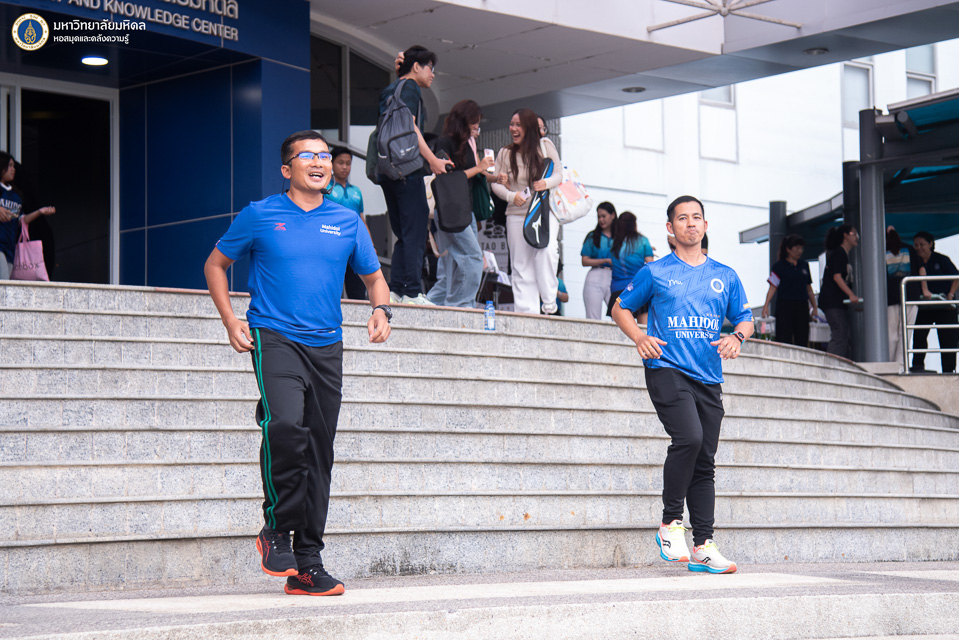 หอสมุดและคลังความรู้มหาวิทยาลัยมหิดล จัดกิจกรรม “ก้าวแรก สู่ล้านก้าว” ครั้งที่ 3 ภายใต้โครงการเดิน-วิ่งล้านก้าวหอสมุดและคลังความรู้มหาวิทยาลัยมหิดล (MULKC’s Million Steps Challenge) โดยมีนักศึกษา อาจารย์ บุคลากรสนใจเข้าร่วมกิจกรรม จำนวน 998 คน โดยได้รับเกียรติจาก คุณมานิตย์ บุบผาสุก นักวิทยาศาสตร์การกีฬา (ผู้ชำนาญการพิเศษ) สาขาวิทยาศาสตร์การกีฬา และคุณสุวิชา เข็มเพ็ชร์ นักวิทยาศาสตร์การกีฬา วิทยาลัยวิทยาศาสตร์ และเทคโนโลยีการกีฬา มหาวิทยาลัยมหิดล เป็นผู้นำการออกกำลังกายเพื่อเตรียมความพร้อมก่อนเริ่มกิจกรรมฯ และในโอกาสนี้ คุณนิพนธ์ สุวรรณสุข รองประธานสมาพันธ์ชมรมเดินวิ่งประเทศไทยให้เกียรติร่วมกิจกรรมในครั้งนี้ ในวันพุธที่ 17 กันยายน พ.ศ. 2568 ณ บริเวณโดยรอบมหาวิทยาลัยมหิดล ศาลายา โดยกิจกรรม “ก้าวแรก สู่ล้านก้าว” เป็นกิจกรรมที่จัดขึ้นในทุกวันพุธที่ 2 ของเดือนเริ่มตั้งแต่เดือนกรกฎาคม ถึงเดือนกันยายน พ.ศ. 2568 ซึ่งส่งเสริมให้ผู้ที่สนใจได้ร่วมออกกำลังกายด้วยการเดิน หรือวิ่งบริเวณโดยรอบมหาวิทยาลัยมหิดลเพื่อสร้างสุขภาวะและความเป็นอยู่ที่ดี มีสุขภาพร่างกายที่แข็งแรง ห่างไกลจากโรคไม่ติดต่อเรื้อรัง (NCDs)