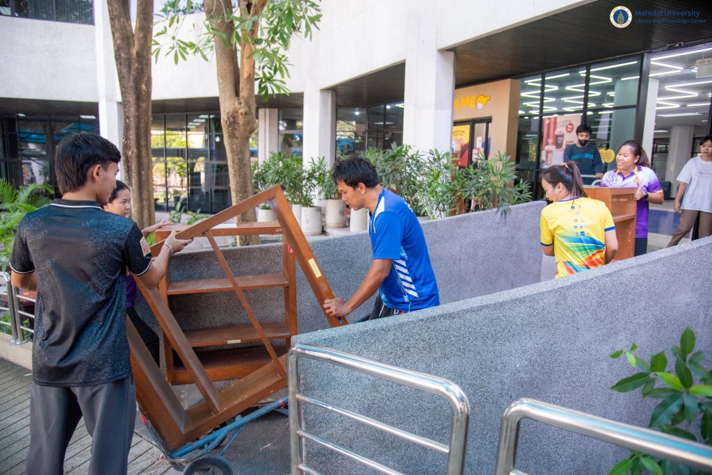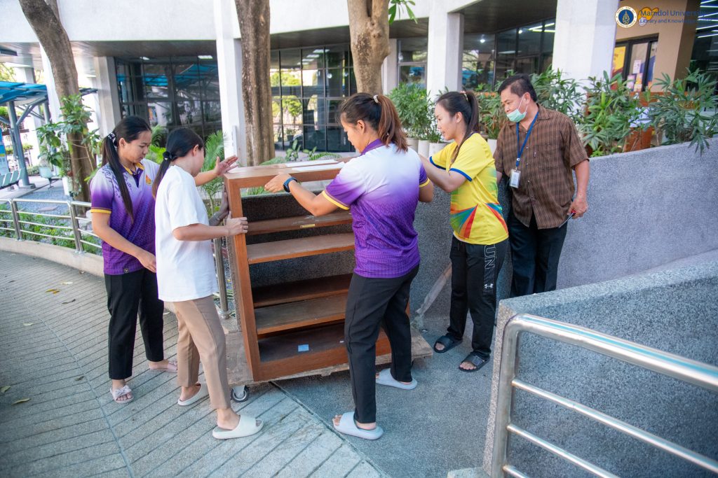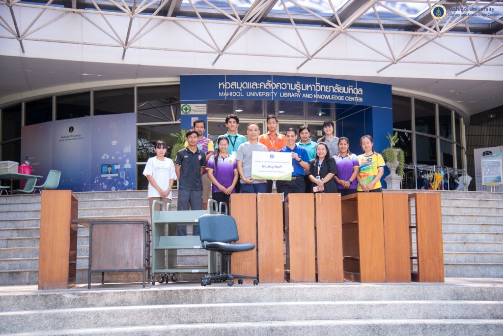 หอสมุดและคลังความรู้มหาวิทยาลัยมหิดล โดย ดร.อภิภู สิทธิภูมิมงคล รองผู้อำนวยการฝ่ายเทคโนโลยีการศึกษาและพันธกิจพิเศษ เป็นประธานส่งมอบครุภัณฑ์สำนักงานบริจาคจำนวน 11 รายการ ให้กับ คุณสุทธิศักดิ์ นันทวิทย์ ผู้อำนวยการโรงเรียนบ้านบางม่วง (ประชารังสิต) ในวันพฤหัสบดีที่ 18 เมษายน 2567 ณ อาคารหอสมุดและคลังความรู้มหาวิทยาลัยมหิดล ศาลายา เพื่อให้การจัดการเรียนการสอนของโรงเรียนดังกล่าวดำเนินการได้อย่างมีประสิทธิภาพมากยิ่งขึ้น พัฒนานักเรียนได้อย่างเต็มศักยภาพ และเพื่อนำไปใช้ประโยชน์ในการปฏิบัติราชการของโรงเรียนดังกล่าวต่อไป โครงการครุภัณฑ์ ปันสุข เพื่อชุมชน เป็นหนึ่งในโครงการพันธกิจเพื่อสังคมของหอสมุดและคลังความรู้ฯ เพื่อเสริมสร้างพันธกิจสัมพันธ์เพื่อสังคม ด้านการพัฒนาแหล่งเรียนรู้ตลอดชีวิต ให้กับชุมชนโดยรอบมหาวิทยาลัยมหิดล