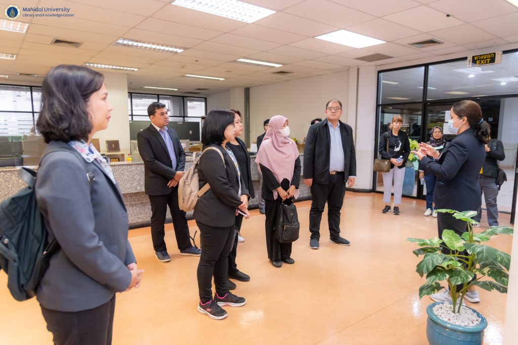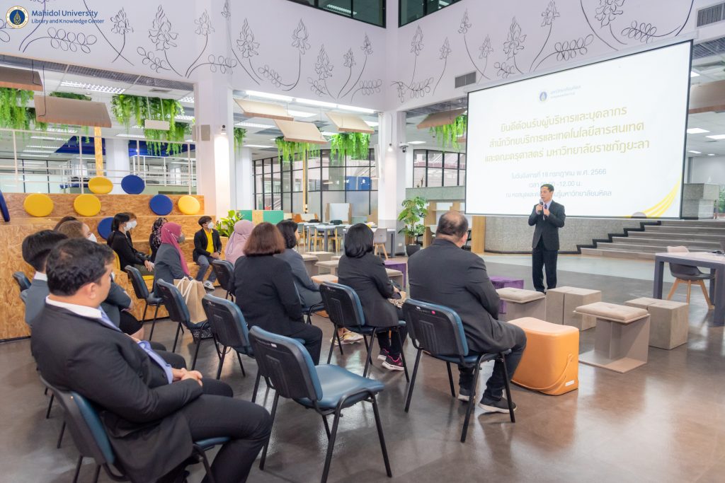 หอสมุดและคลังความรู้มหาวิทยาลัยหมิดล โดย ดร.อภิภู สิทธิภูมิมงคล รองผู้อำนวยการฝ่ายเทคโนโลยีการศึกษาและพันธกิจพิเศษ ให้การต้อนรับ ดร.นโรดม กิตติเดชานุภาพ ผู้อำนวยการสำนักวิทยบริการและเทคโนโลยีสารสนเทศ ปฏิบัติราชการแทนรักษาราชการแทนอธิการบดีมหาวิทยาลัยราชภัฏยะลา และผู้ช่วยศาสตราจารย์ ดร.รุ้งลาวัณย์ จันทรัตนา คณบดีคณะครุศาสตร์ มหาวิทยาลัยราชภัฏยะลา พร้อมด้วยคณะผู้บริหาร อาจารย์ และบุคลากรจากมหาวิทยาลัยราชภัฏยะลา จำนวน 18 ท่าน เนื่องในโอกาสเข้าศึกษาดูงานด้านระบบบริหารจัดการคุณภาพ ISO 9001:2015 ในวันอังคารที่ 18 กรกฎาคม พ.ศ. 2566 ที่ผ่านมา ณ อาคารหอสมุดและคลังความรู้มหาวิทยาลัยมหิดล โดยมี รองศาสตราจารย์ ดร.สยาม อรุณศรีมรกต ที่ปรึกษาด้านการจัดการบริหารจัดการคุณภาพ ISO 9001:2015 และระบบการจัดการสิ่งแวดล้อม ISO 14001:2004  ของหอสมุดและคลังความรู้ฯ ร่วมแลกเปลี่ยนและให้ความรู้ในครั้งนี้ โดยการเยี่ยมชมศึกษาดูงานในครั้งนี้มีวัตถุประสงค์เพื่อแลกเปลี่ยนแนวทางการปฏิบัติงานระบบบริหารจัดการคุณภาพของสำนักวิทยบริการและเทคโนโลยีสารสนเทศ และคณะครุศาสตร์มหาวิทยาลัยราชภัฏยะลา ให้เกิดประสิทธิภาพต่อไปในอนาคต