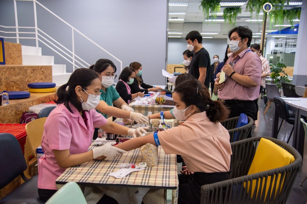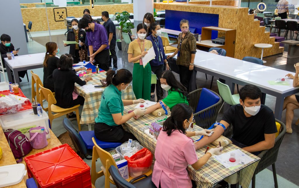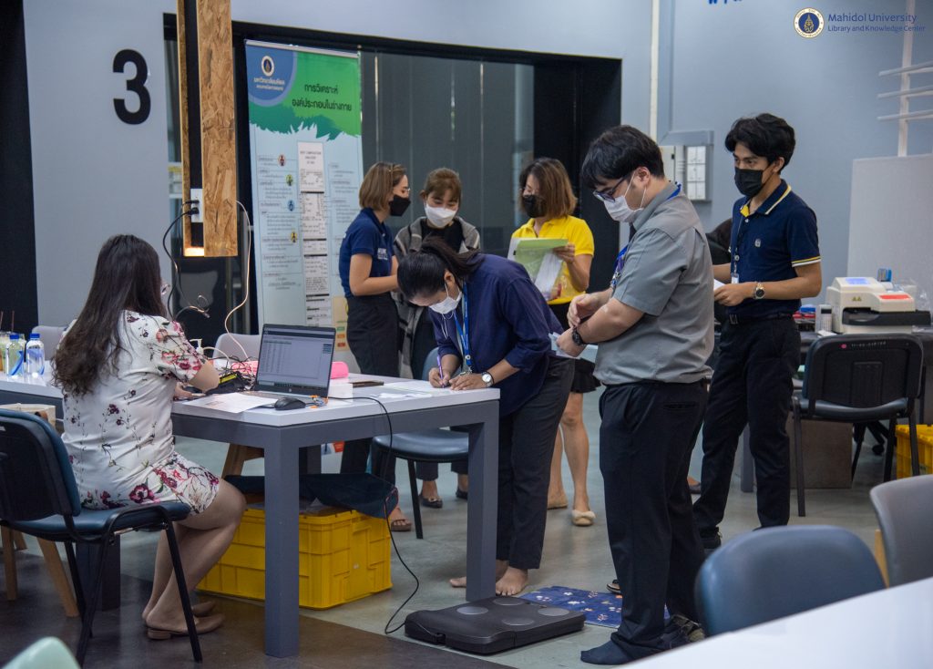 หอสมุดและคลังความรู้มหาวิทยาลัยมหิดล ได้ตระหนักถึงความสำคัญด้านสุขภาพ ของบุคลากร จึงได้จัดบริการตรวจประเมินสุขภาพประจำปี 2565 ให้กับบุคลากรขึ้น โดยคณะเทคนิคการแพทย์ มหาวิทยาลัยมหิดล เป็นผู้ให้บริการ เจาะเลือด วัดความดัน และ X-ray เป็นต้น เมื่อวันจันทร์ที่ 19 ธันวาคม 2565 ที่ผ่านมา ณ บริเวณ Co-MU Space ชั้น 1 อาคารหอสมุดและคลังความรู้มหาวิทยาลัยมหิดล ศาลายา เพราะว่าการที่บุคลากรของหอสมุดและคลังความรู้ฯ มีสุขภาพร่างกาย สุขภาพใจ ที่แข็งแรง ปราศจากโรคภัยไข้เจ็บ จะนำพาองค์กรไปสู่ความเป็นเลิศได้อย่างยั่งยืนต่อไป